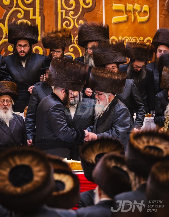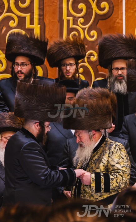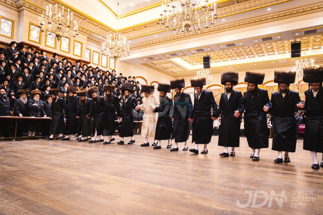 טויזענטער חסידי סאטמאר פרייען זיך מיט בשמחתו הגדולה פונעם רבי'ן, ודור רביעי ישובו הנה