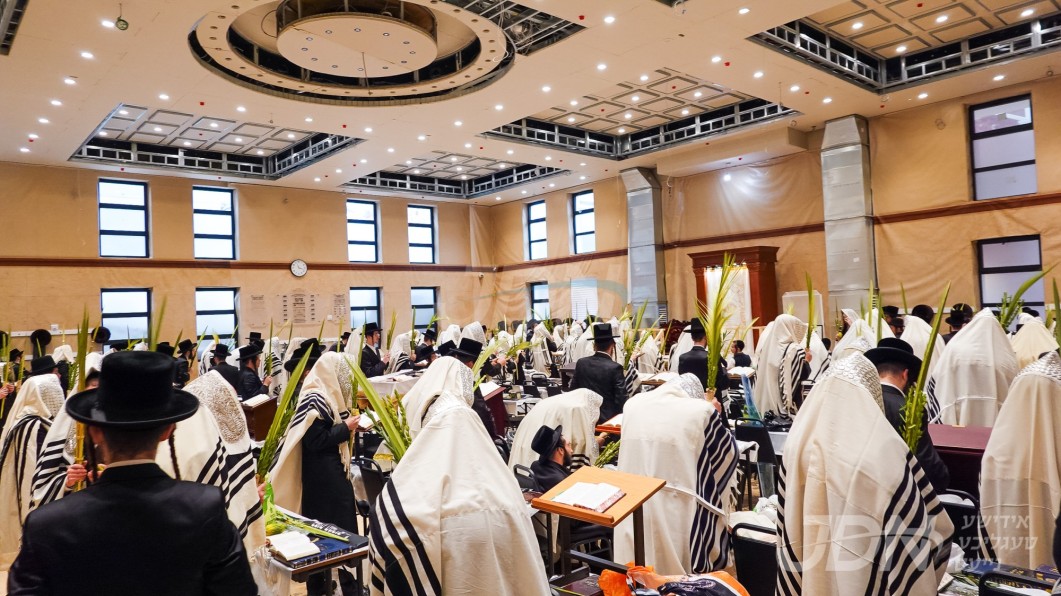 האדמו"ר מקארלין סטאלין איז מתפלל ביים כותל המערבי חול המועד סוכות
