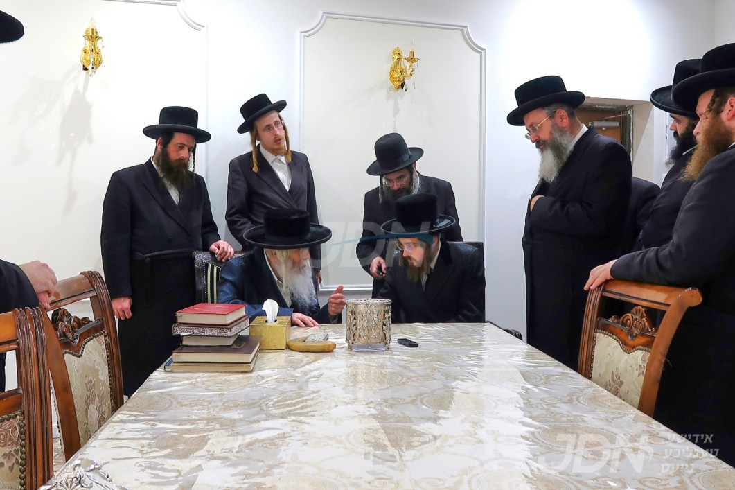 האדמו"ר מסקווירא באזוכט ביי גיסו האדמו"ר מוויזניץ אין שיכון סקווירא