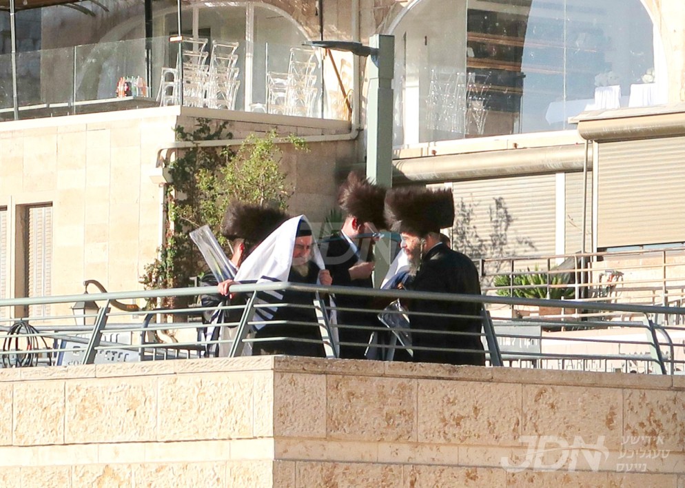 האדמו"ר מקארלין סטאלין איז מתפלל ביים כותל המערבי חול המועד סוכות