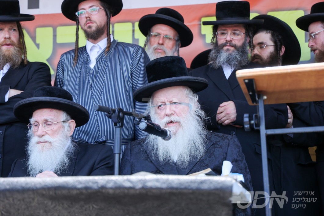 על פי קריאת גדולי ראשי הישיבות: גרויסע עצרת קעגן די גזירת הגיוס וועט פארקומען קומענדיגן זונטאג ברחובה של עיר
