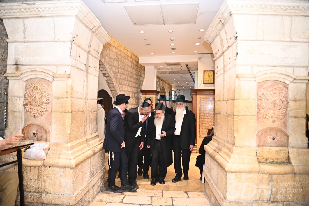 האדמו"ר משומרי אמונים איז מתפלל ביים קבר רחל און ביים כותל המערבי לקראת די שמחת החתונה פון בנו