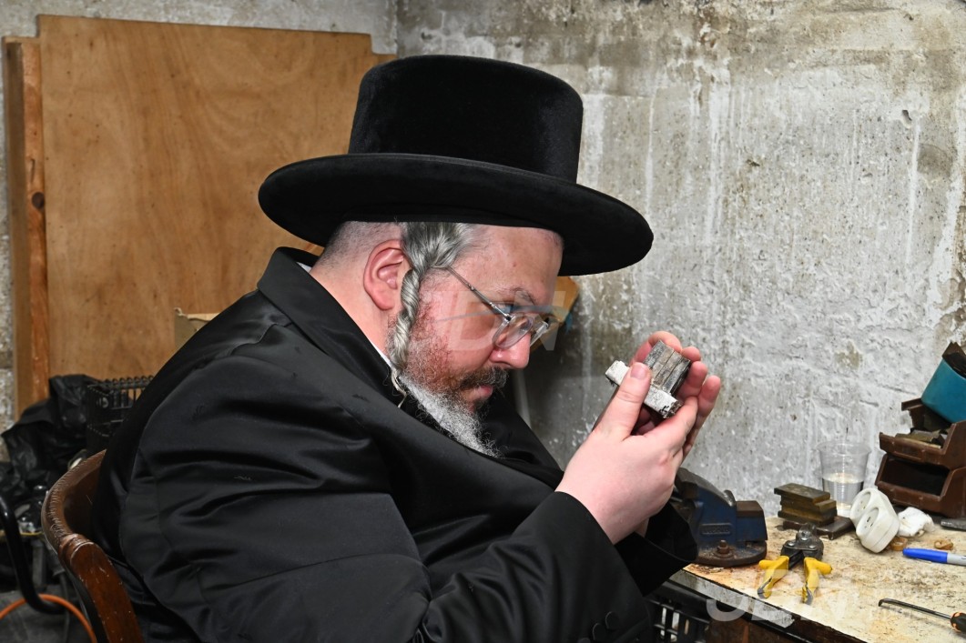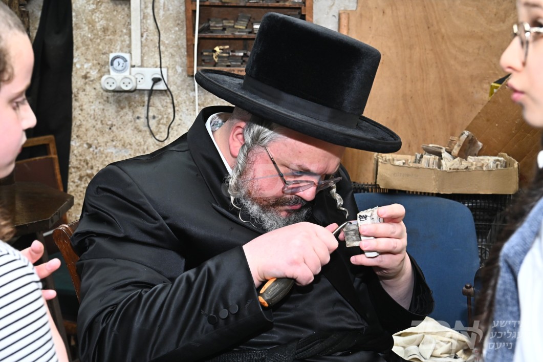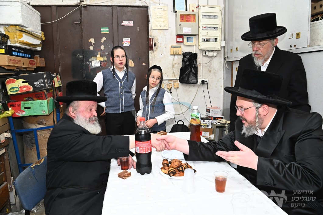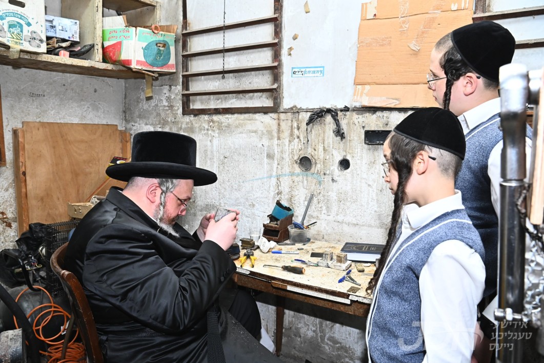 הרה"צ רבי אהרן מרדכי רוקח בן האדמו"ר מבעלזא ביים צוגרייטן די תפילין לקראת די שמחת הבר מצוה פון בנו