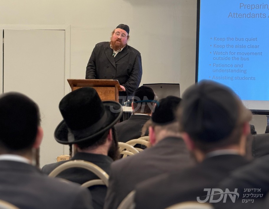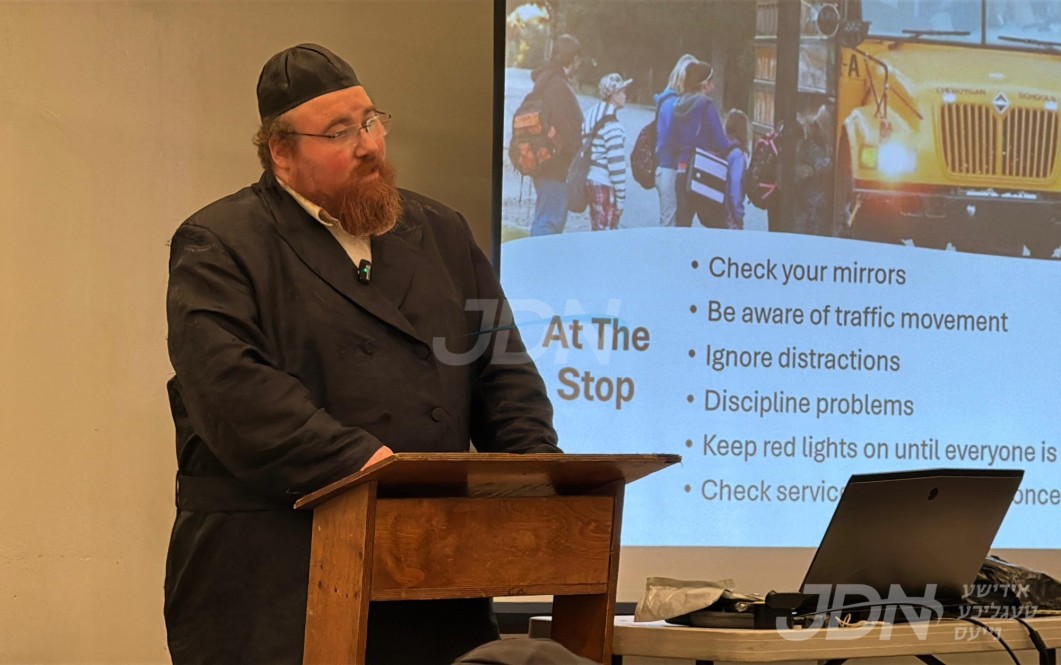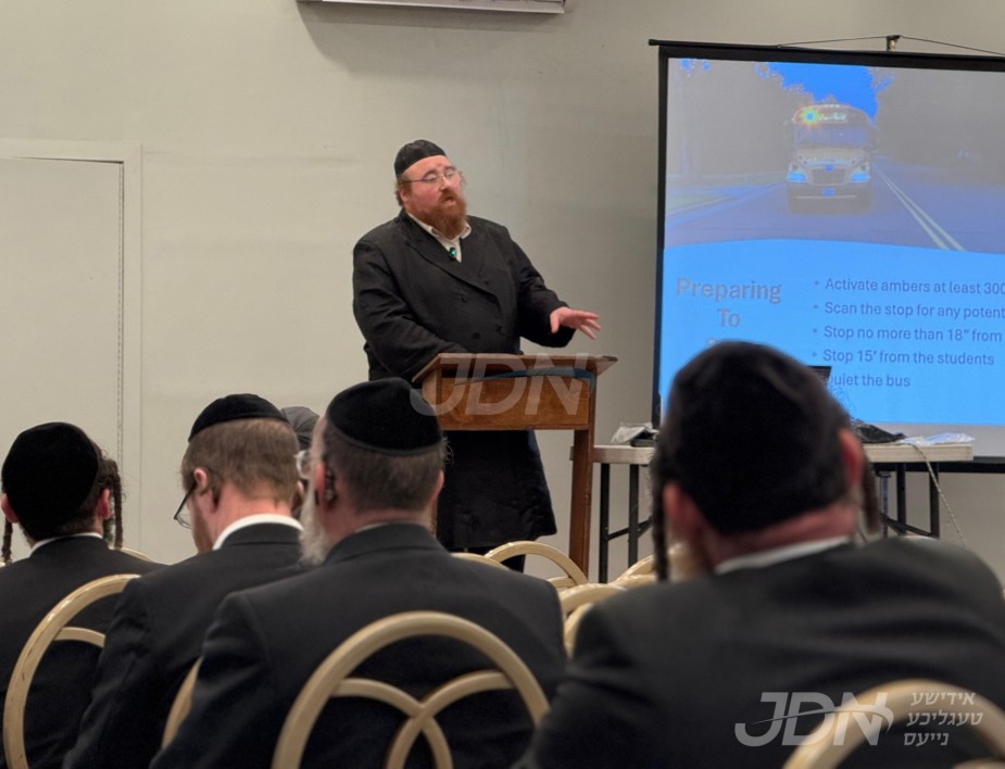 פולע באס דרייווערס אין בארא פארק האבן זיך צוזאמגענומען אויף א סעיפטי מיטונג צום נייעם שנת הלימודים