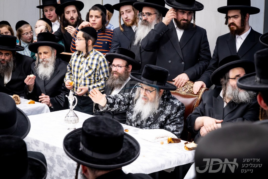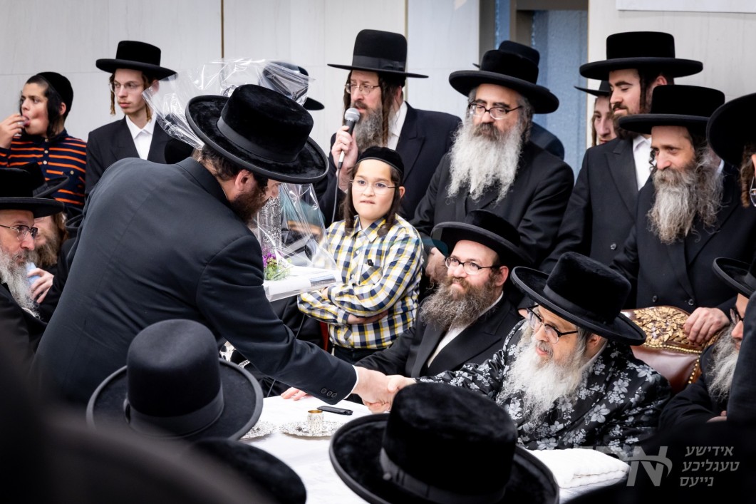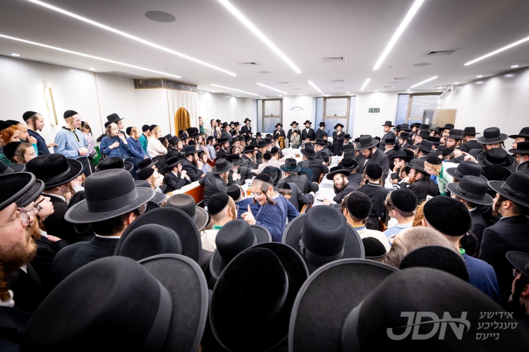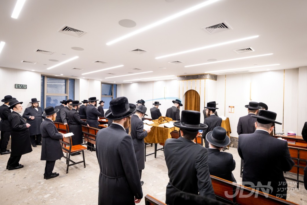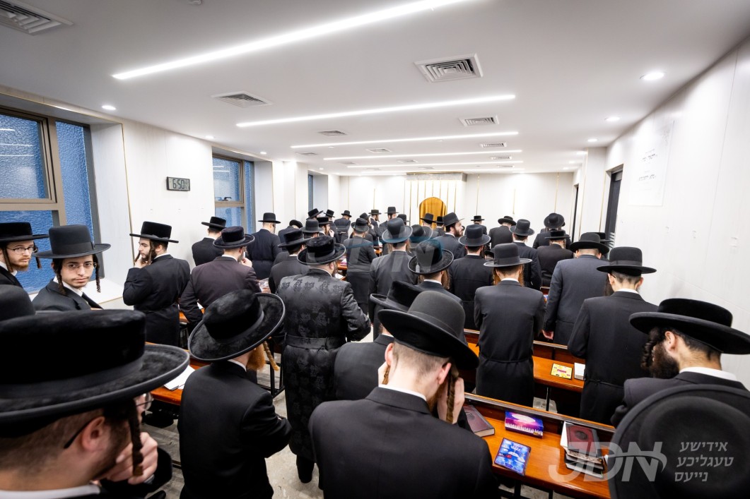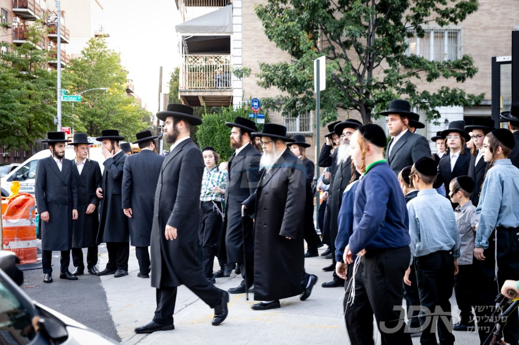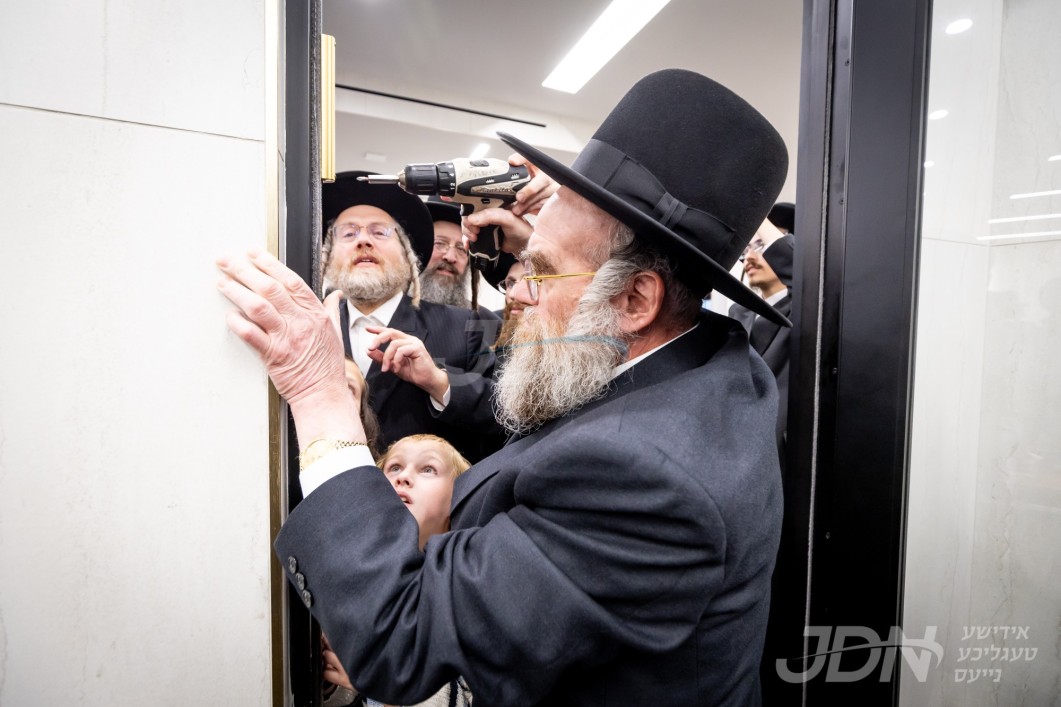מעמד קביעת מזוזה אין ביהמ"ד קיט"ל סאטמאר בניני יאקאבאוויטש - לי גארדענס אין וויליאמסבורג