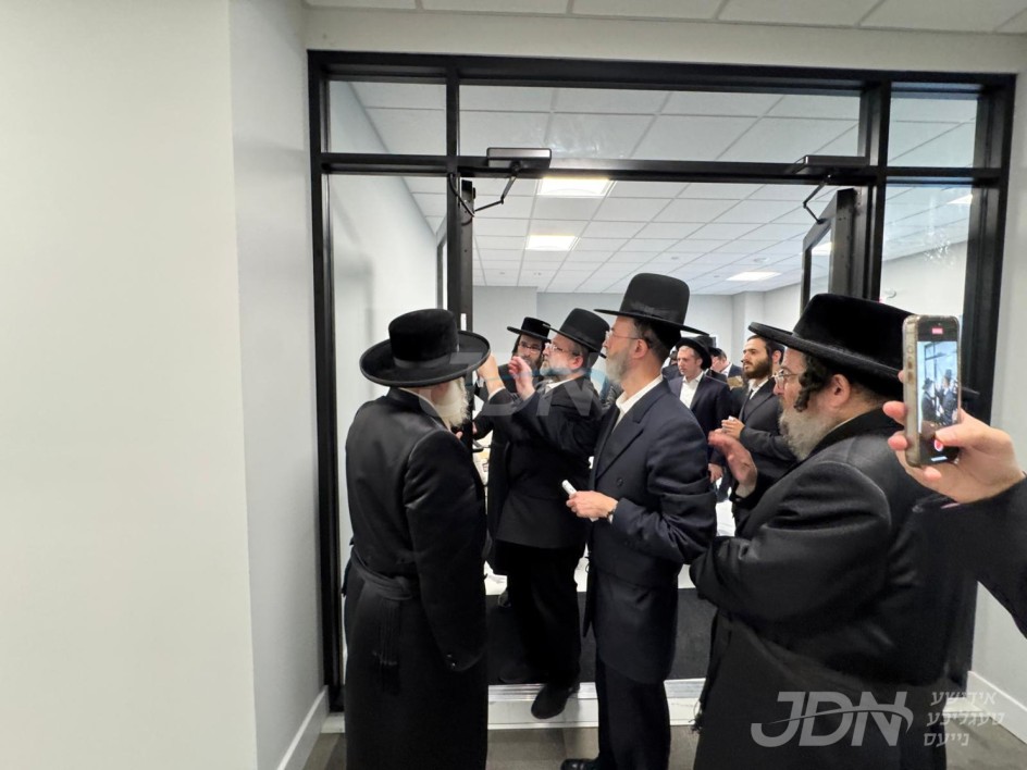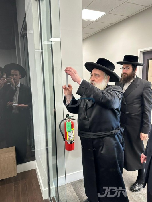 מעמד קביעת מזוזה בראשות רבני העיר פאר די נייע חידוש'פולע האלסעיל געשעפט מאטי'ס - מיטיב ווי אלעס ווערט פארקויפט האלסעיל פרייזן