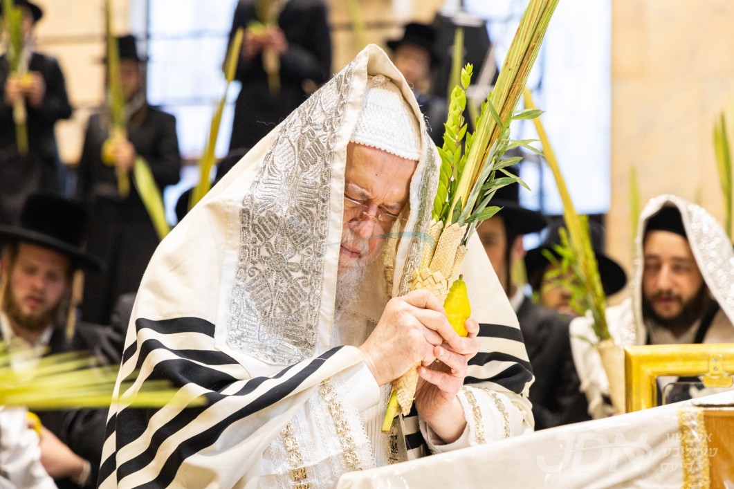 האדמו"ר מקארלין סטאלין איז מתפלל ביים כותל המערבי חול המועד סוכות