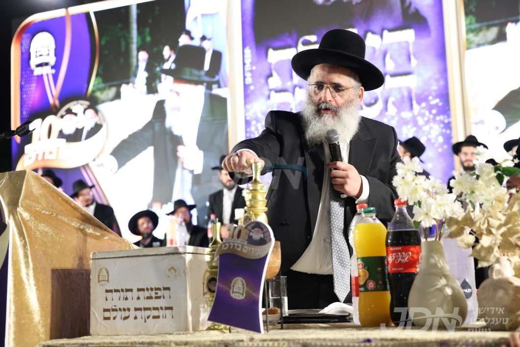 מיט געגועים און כיסופין האבן טויזענטער אידן מיטגעהאלטן די צענטע הילולא קדישא, דעם "יובל העשור", צו די הסתלקות פון הגאון הקדוש רבי יורם מיכאל אברג'ל זצ"ל, בצל הקודש פון בנו חביבו הגאון הגדול רבי ישראל אברג'ל שליט"א, אינעם מושב ברור חיל אין דרום ארץ ישראל.