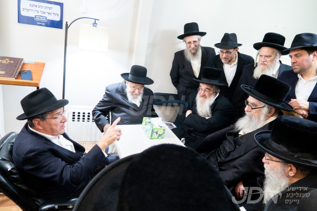אינעם בית האבלים וואו ר' שלמה איז געזעסן, זענען אנגעקומען הונדערטער אדמורי"ם ורבנים, גרויסע חסידישע רבי'ס און ראשי ישיבות, באקאנטע פאליטיקאנטן און הויכראנגיגע באאמטע פון איבערן גאנצן לאנד, וועלטס גבירים און פילאנטראפן וואס זענען געקומען מנחם זיין ר' שלמה, דער יושב ראש פון אגודת ישראל דאמעריקע, און נשיא פון איחוד מוסדות גור.