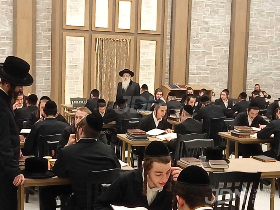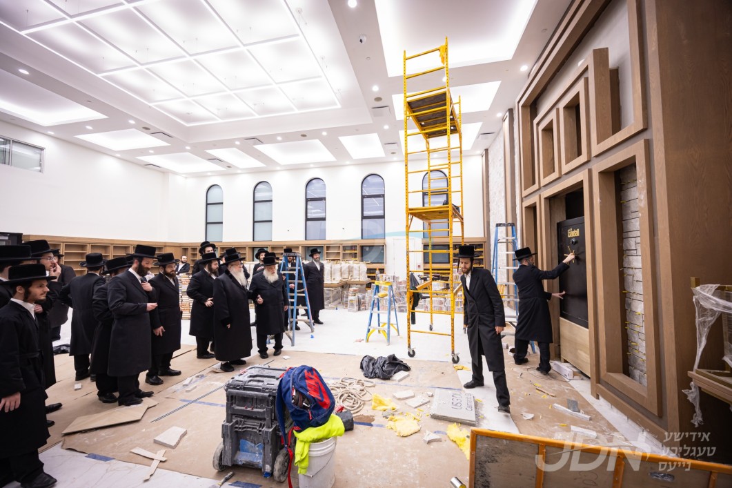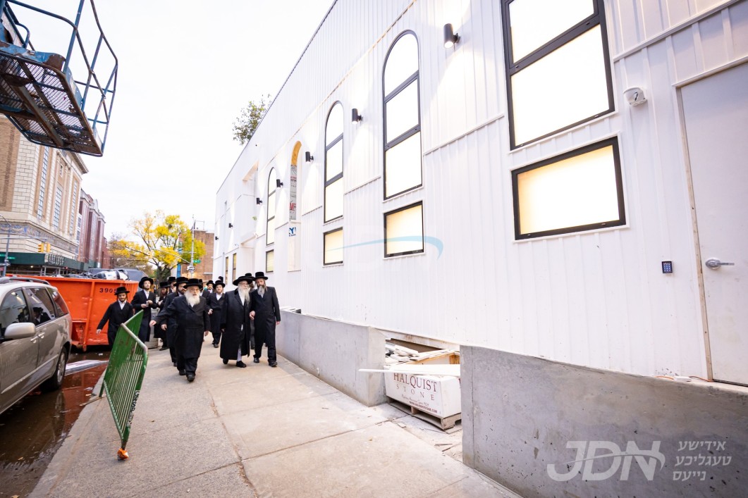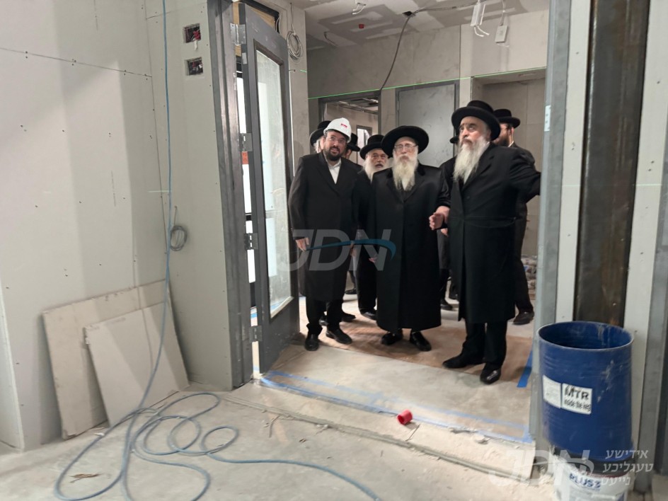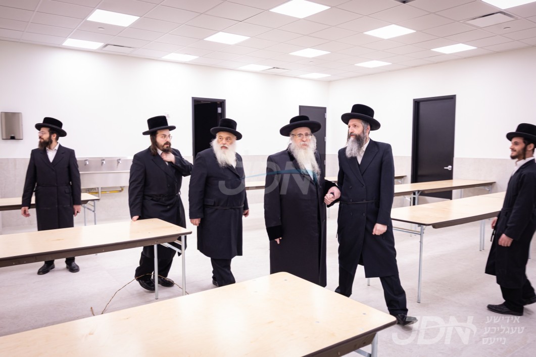 האדמו"ר מצאנז קלויזענבורג באזוכט די בוי ארבעט און סדר הלימוד די ערשטע טאג פון זמן אין בנין החדש ישיבה גדולה צאנז קלויזענבורג