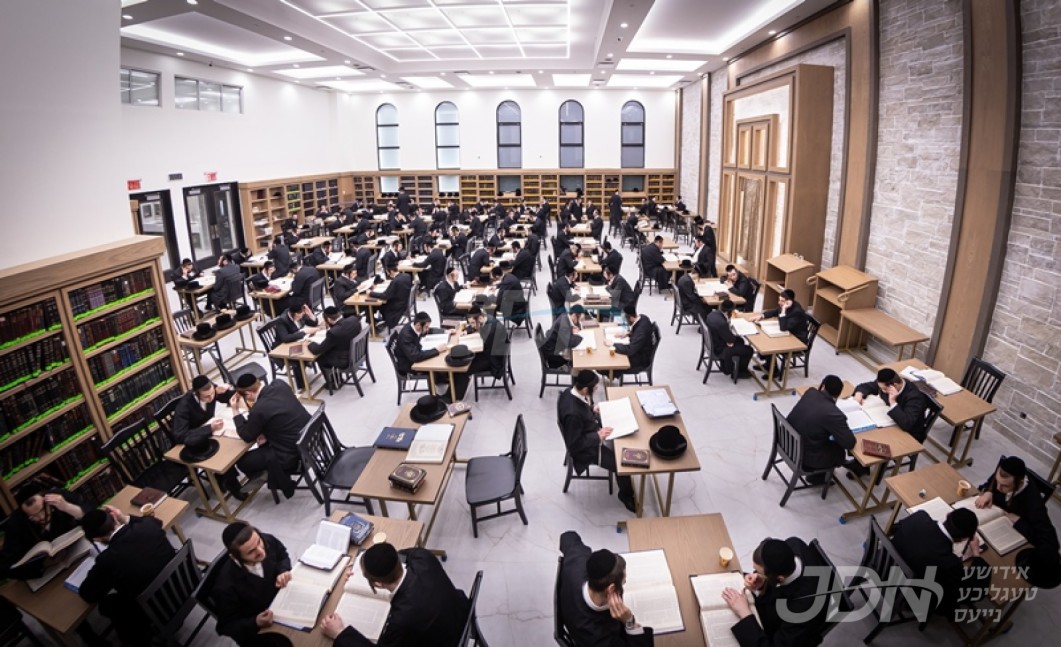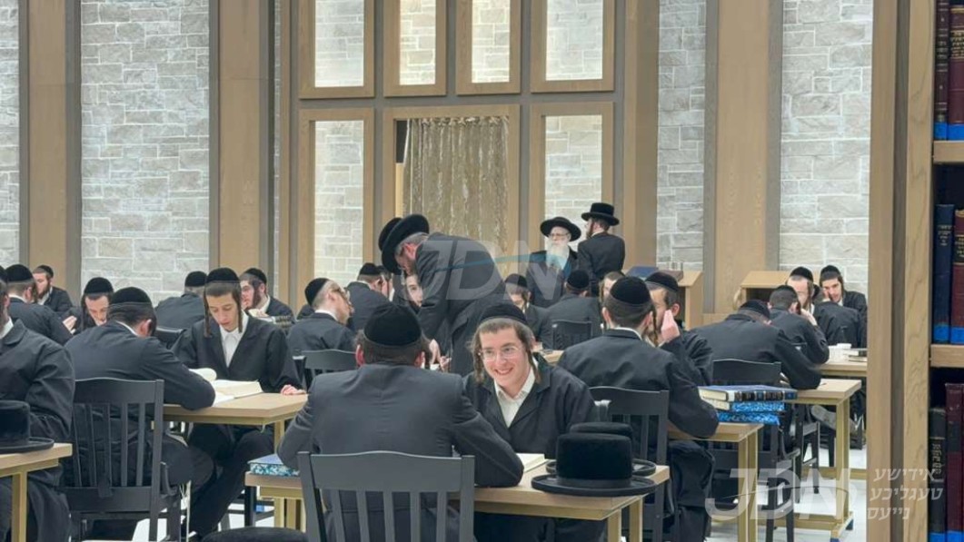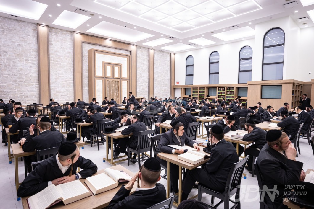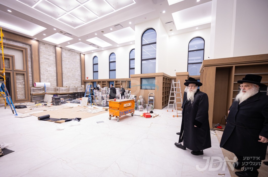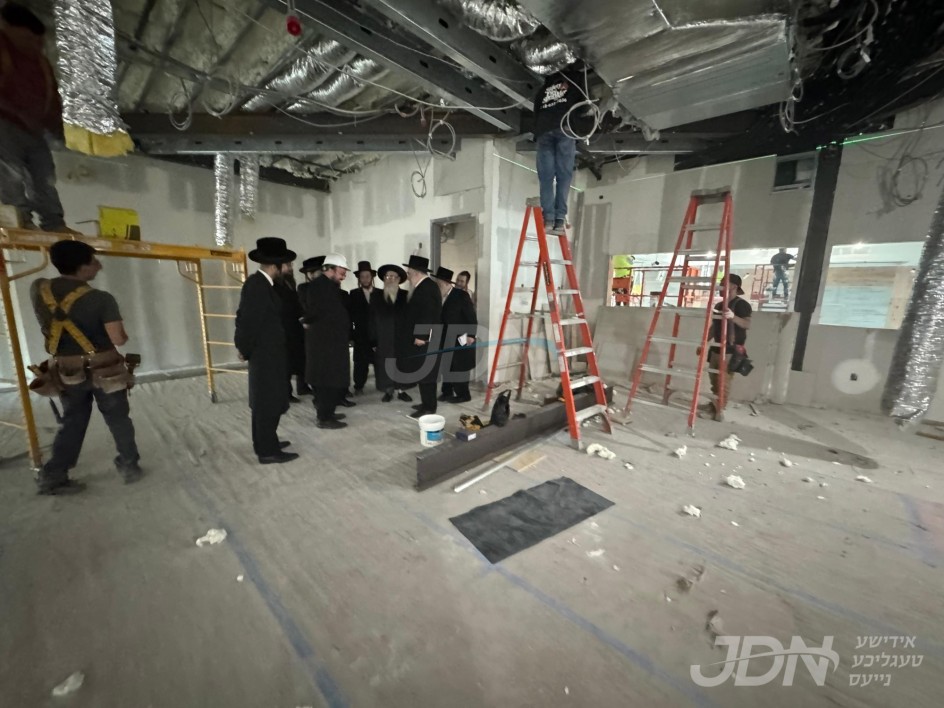 האדמו"ר מצאנז קלויזענבורג באזוכט די בוי ארבעט און סדר הלימוד די ערשטע טאג פון זמן אין בנין החדש ישיבה גדולה צאנז קלויזענבורג