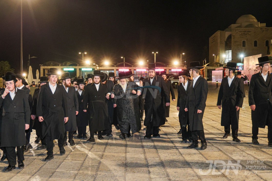 האדמו"ר מצאנז שבת קודש ביים כותל המערבי מיט תומכי המוסדות