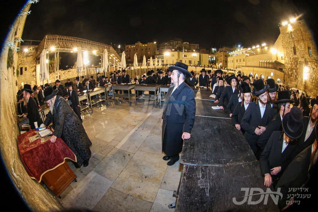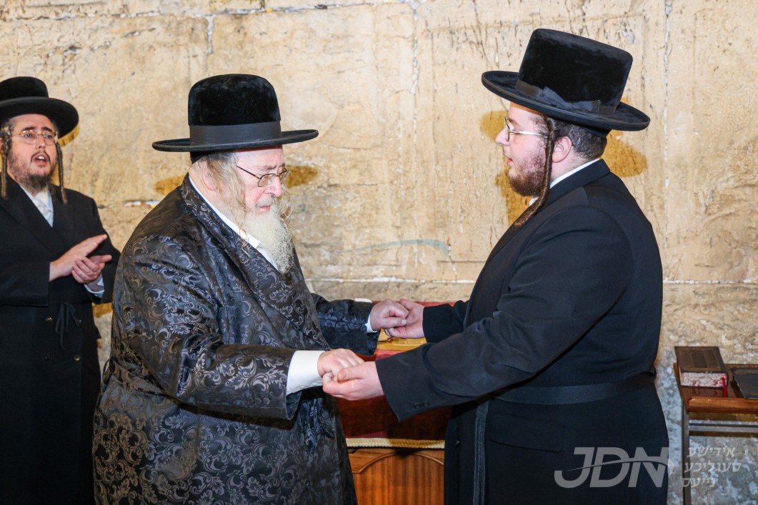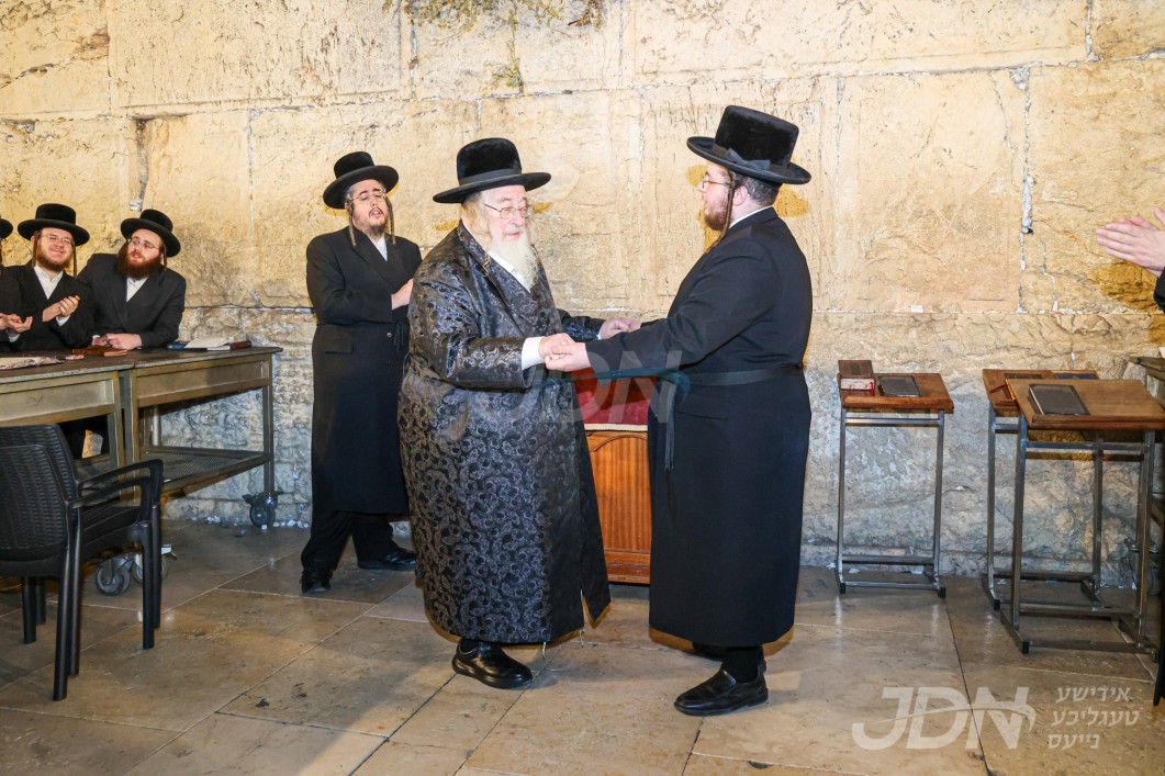 האדמו"ר מוויזניץ איז מתפלל ביים כותל המערבי