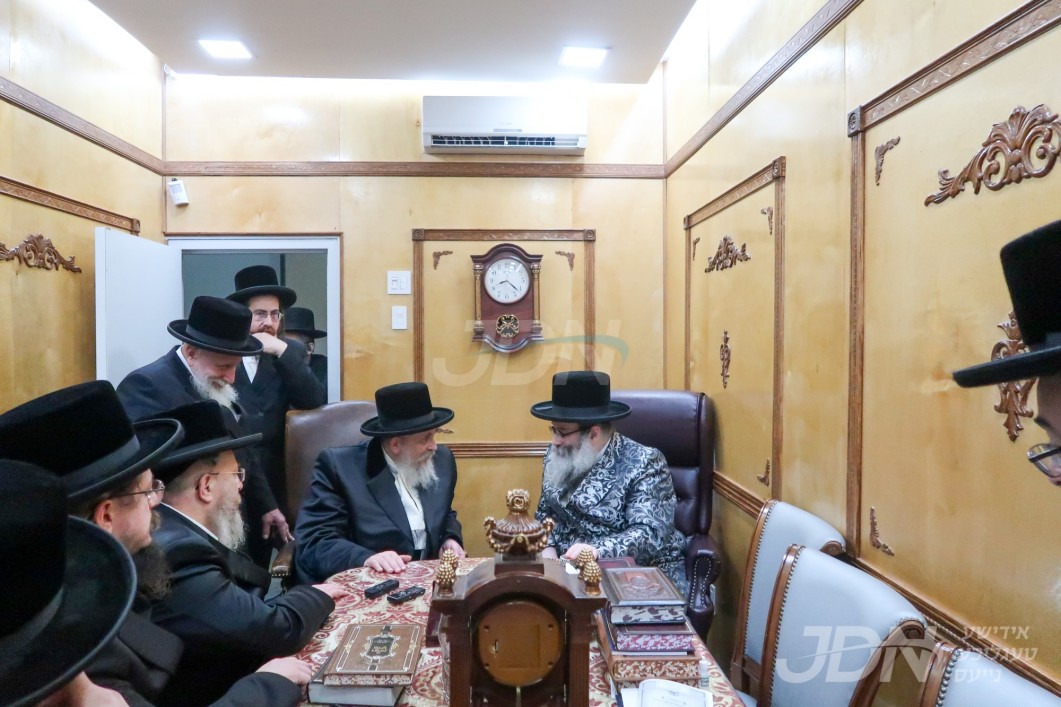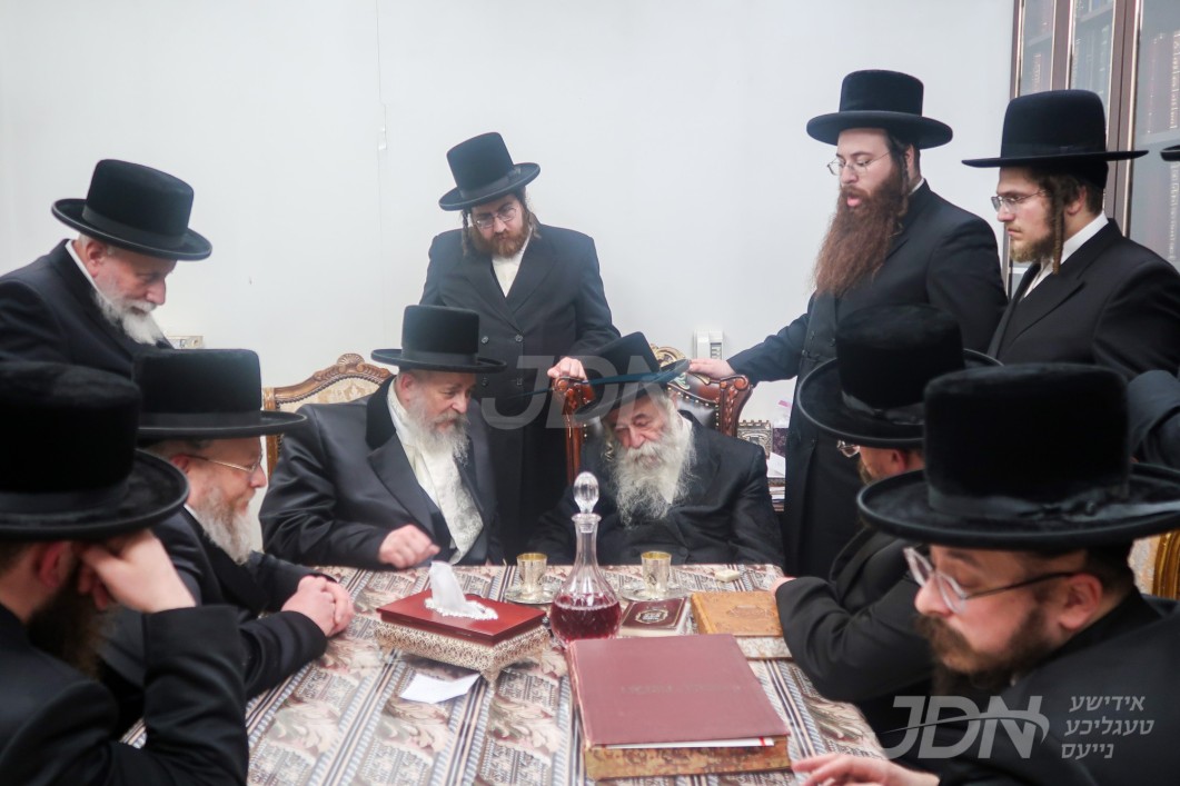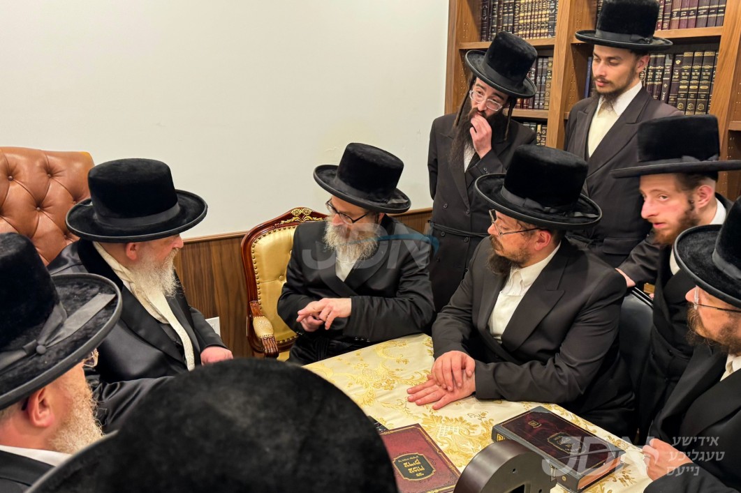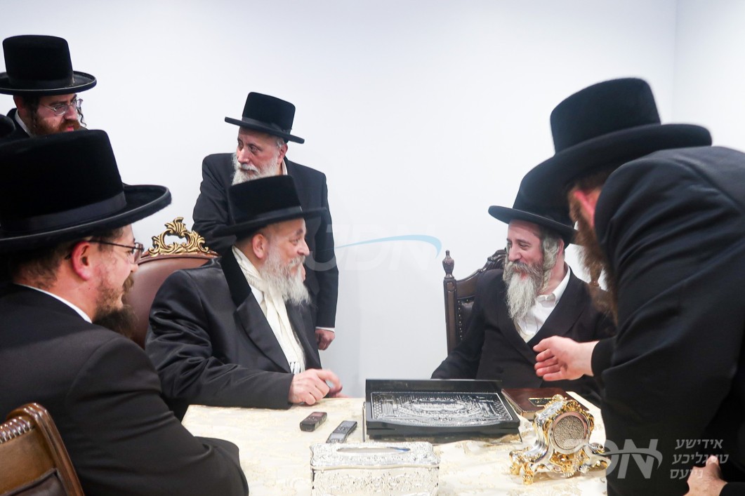 האדמו"ר מסקווירא מב"פ באוכט ביי גדולי ישראל לקראת די שמחת החתונה פון בנו החתן