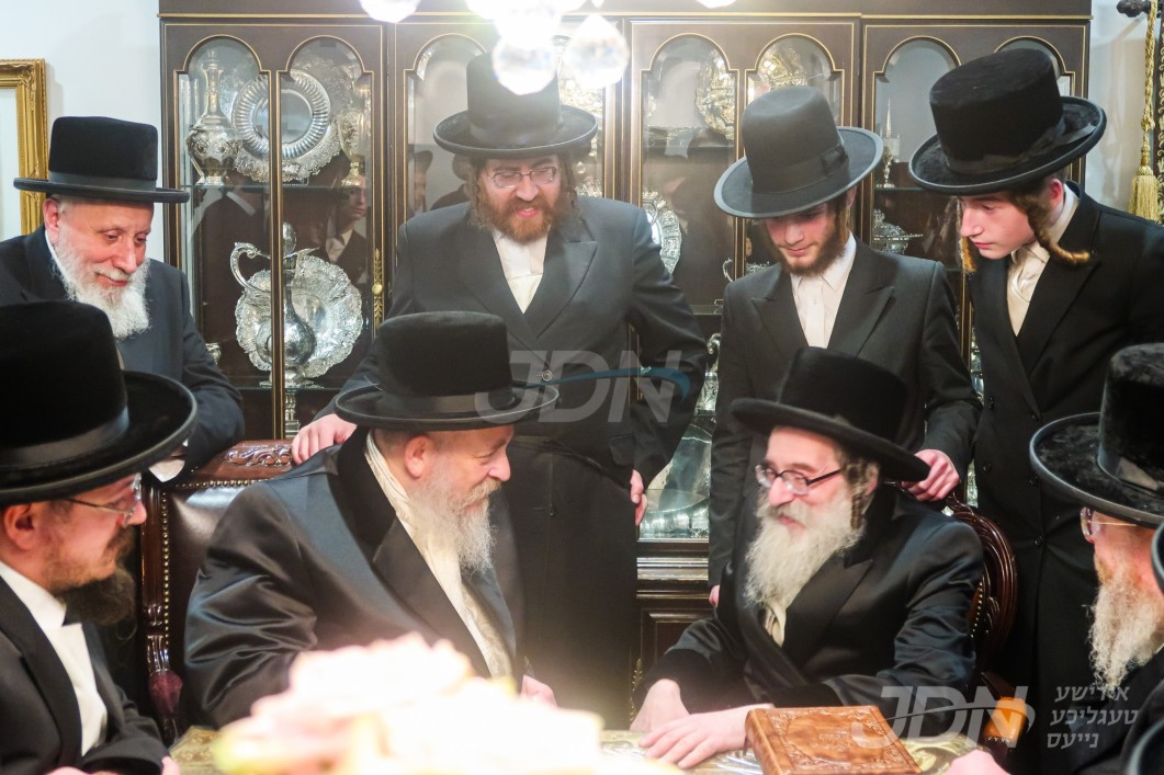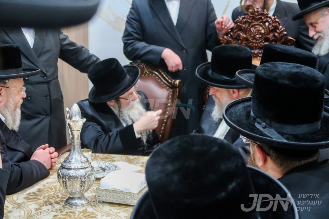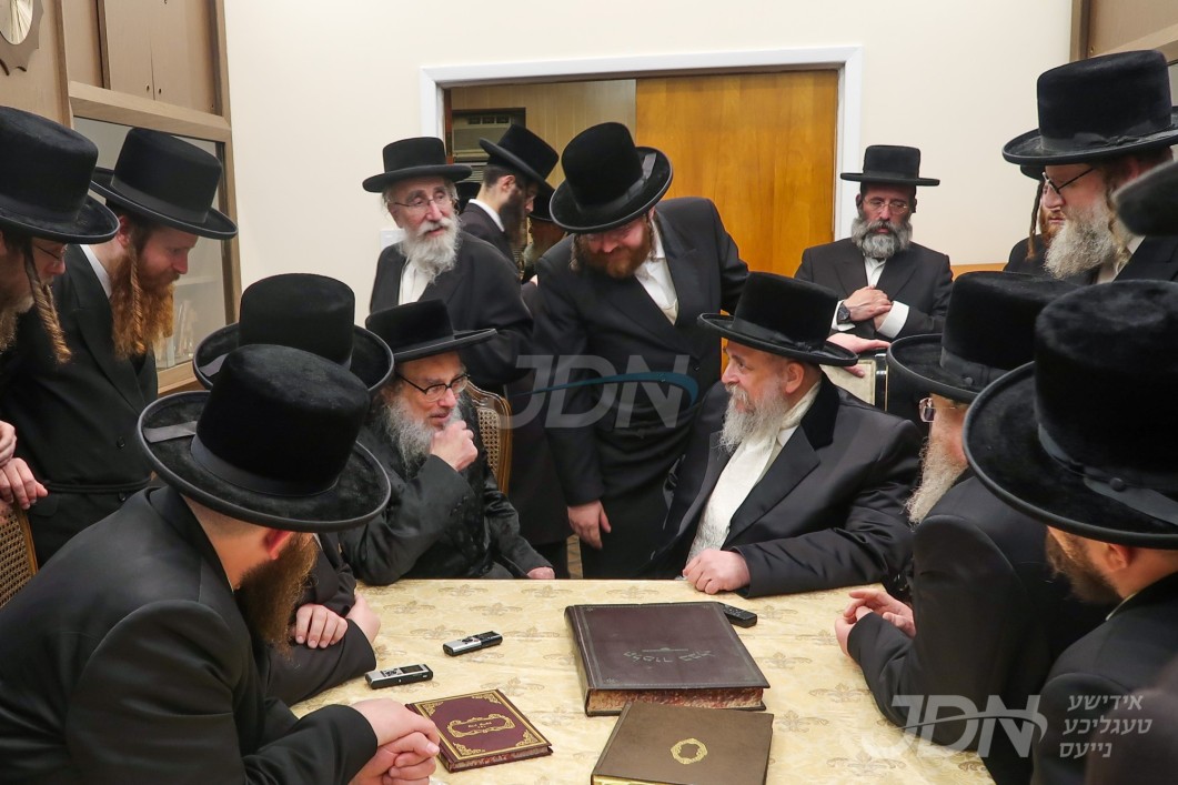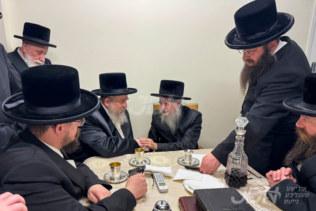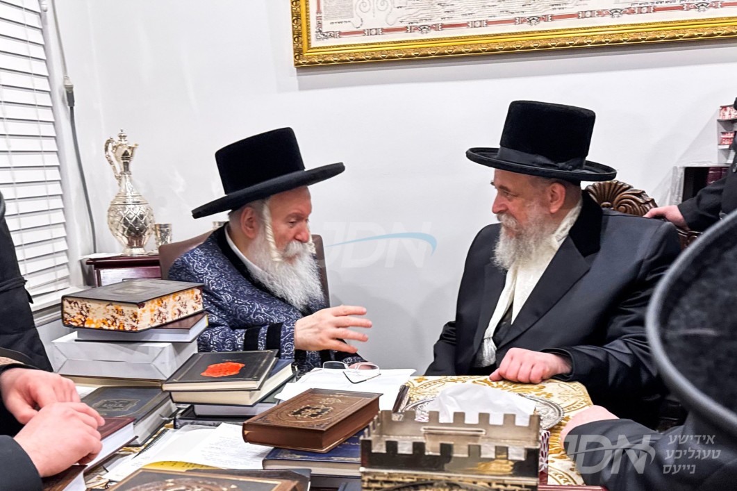 האדמו"ר מסקווירא מב"פ באוכט ביי גדולי ישראל לקראת די שמחת החתונה פון בנו החתן