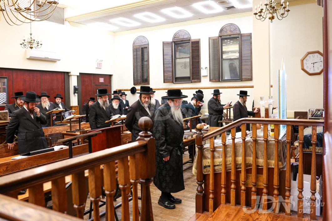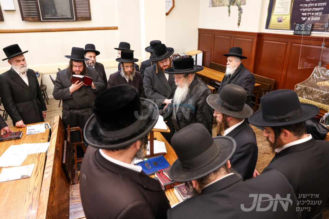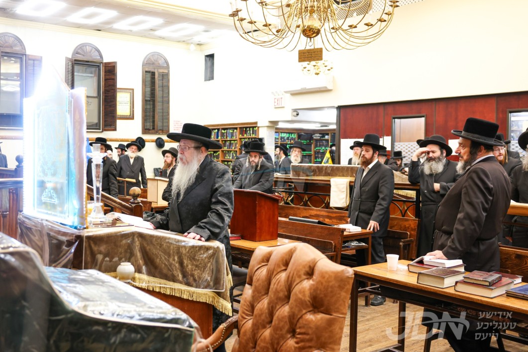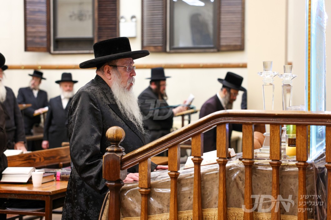 האדמו"ר מטאהש ביי תפילת מעריב אין ביהמ"ד טאהש אין בארא פארק