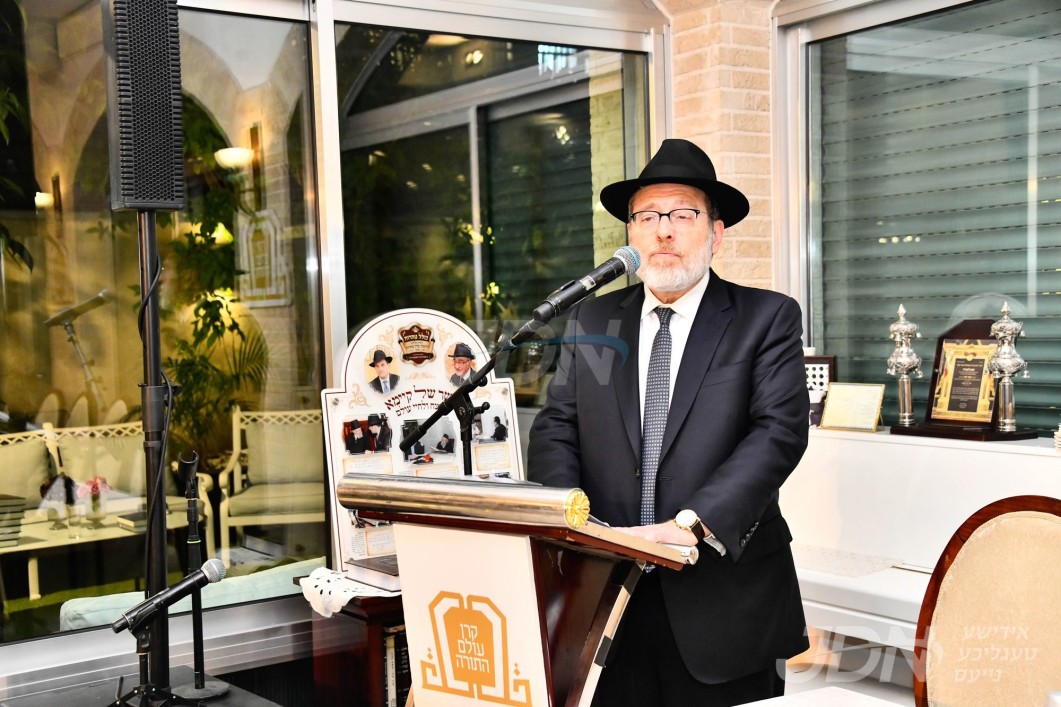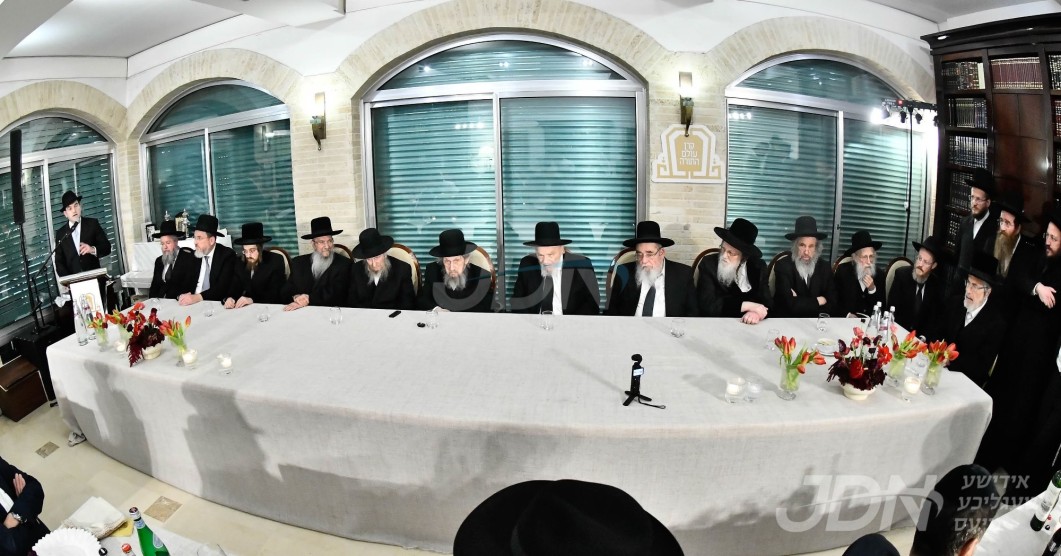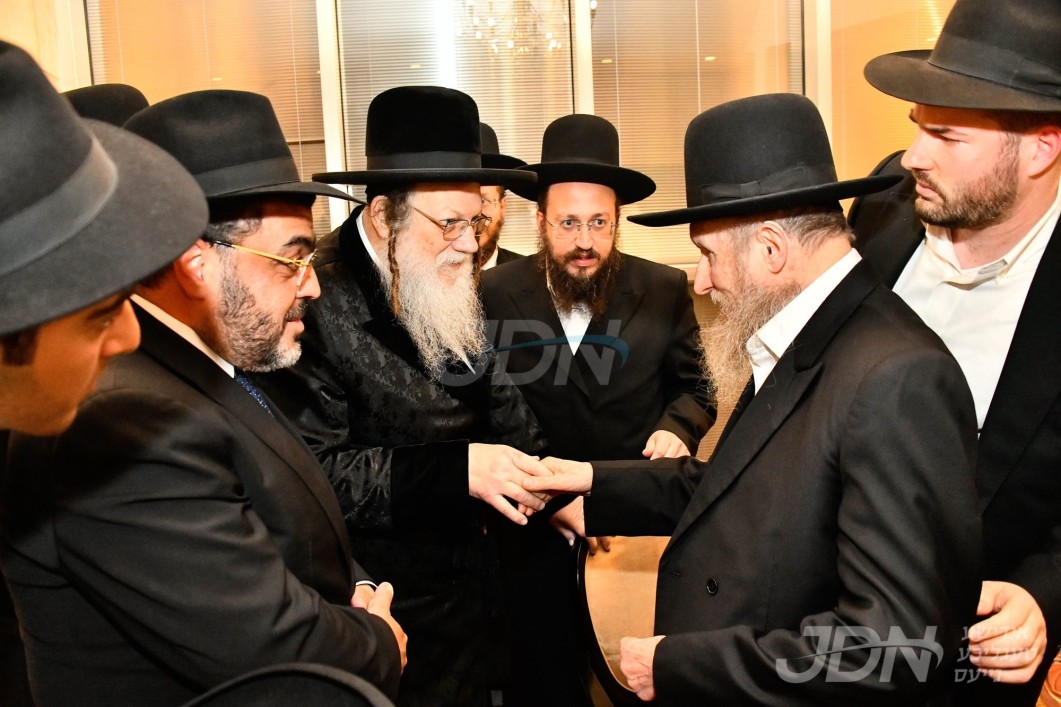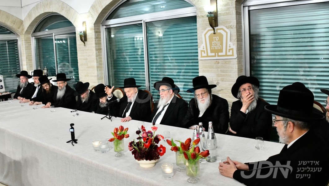 גייסטרייכע אסיפה לטובת קרן עולם התורה, אין שטוב פון הנגיד ר' ישכר קנאלל אין בני ברק, בראשות גדולי ראשי ישיבות און אדמורי"ם