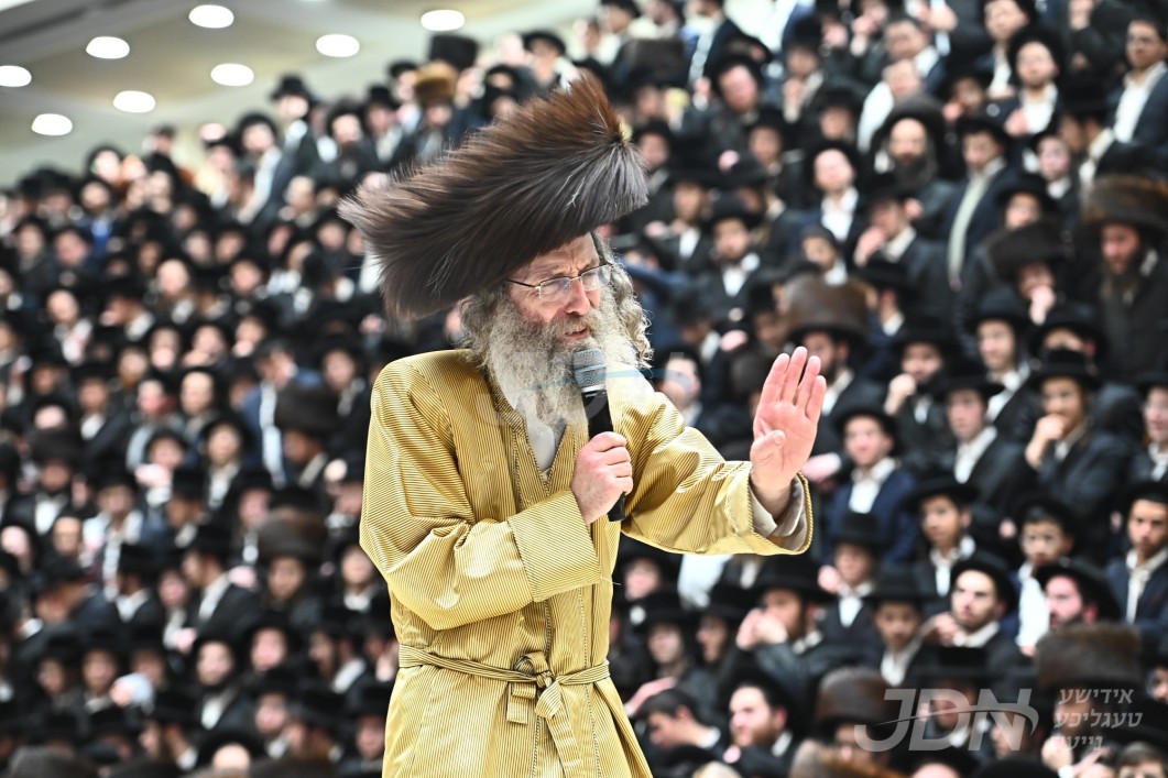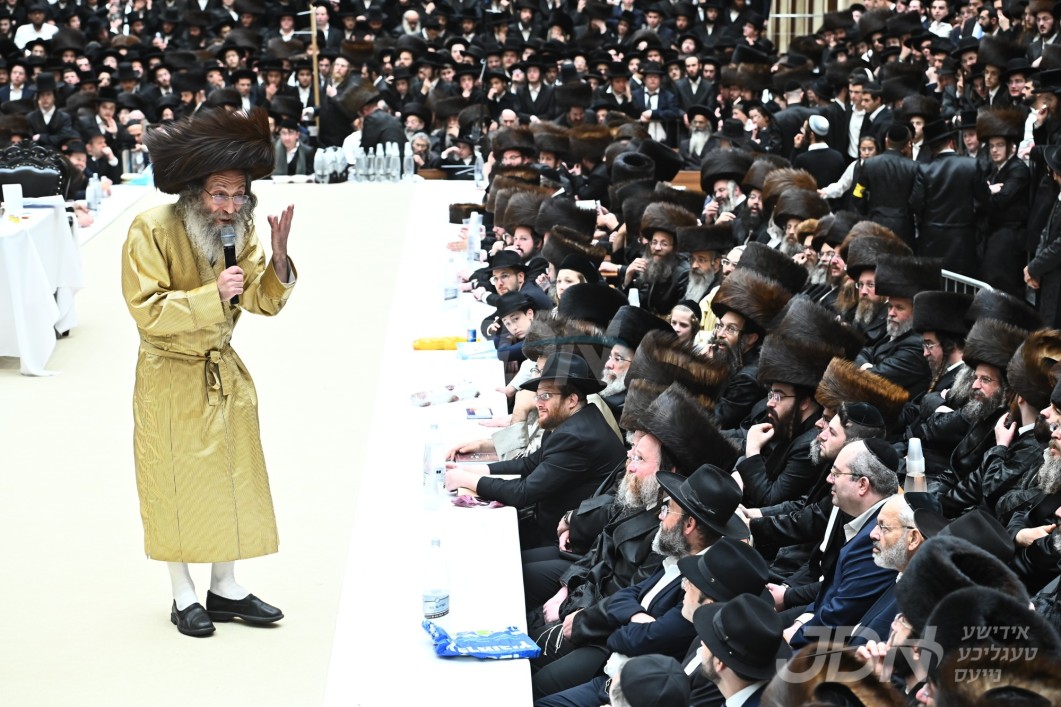 האדמו"ר משענדישוב ביי מלוה מלכה בבית מדרשו אין מאנסי לרגל די יארצייט פון חותנו הרה"ק רבי דוד משה מקרעטשניף זי"ע