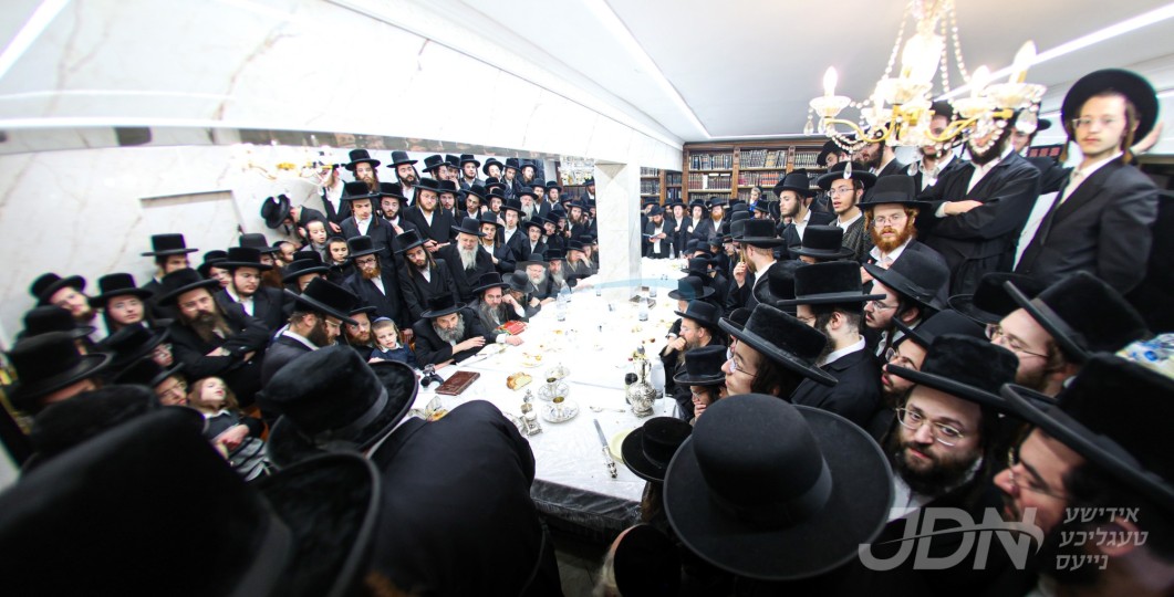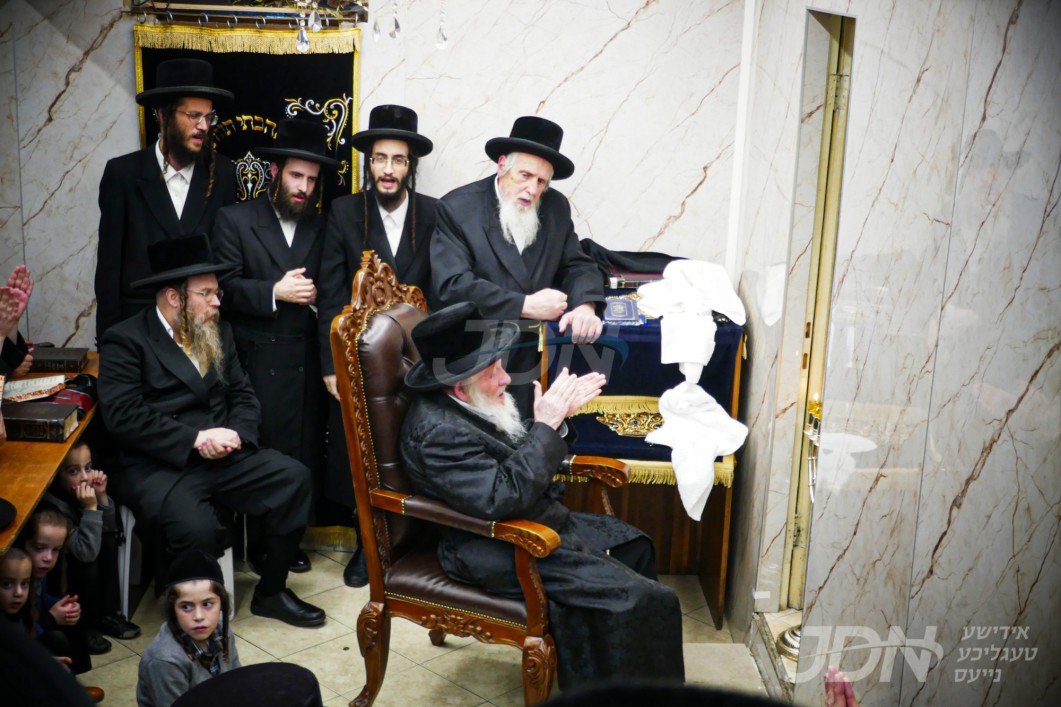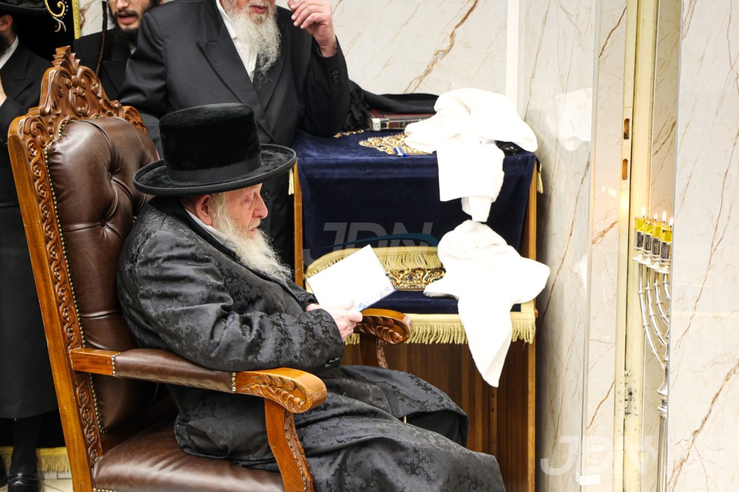 האדמו"ר מלעלוב ביים טיילן חנכה געלט פאר ילדי תלמוד תורה לעלוב
