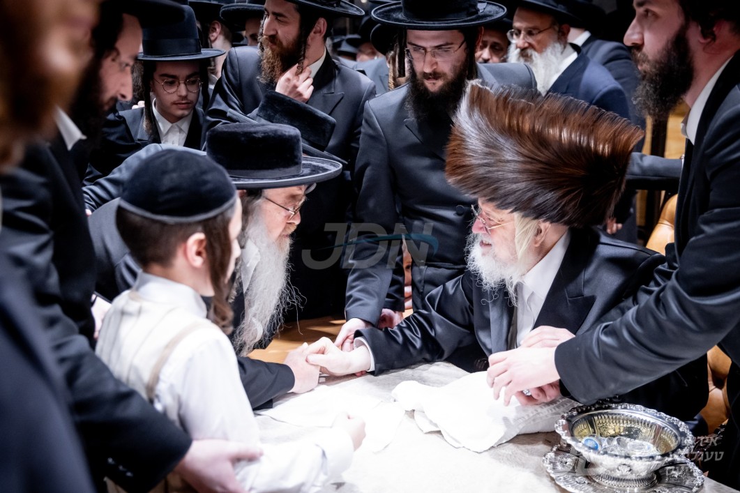 האדמו"ר מלעלוב ביים טיילן חנכה געלט פאר ילדי תלמוד תורה לעלוב