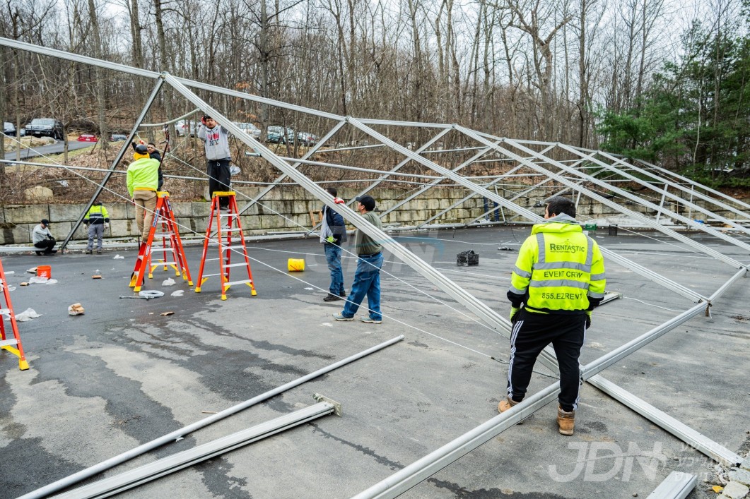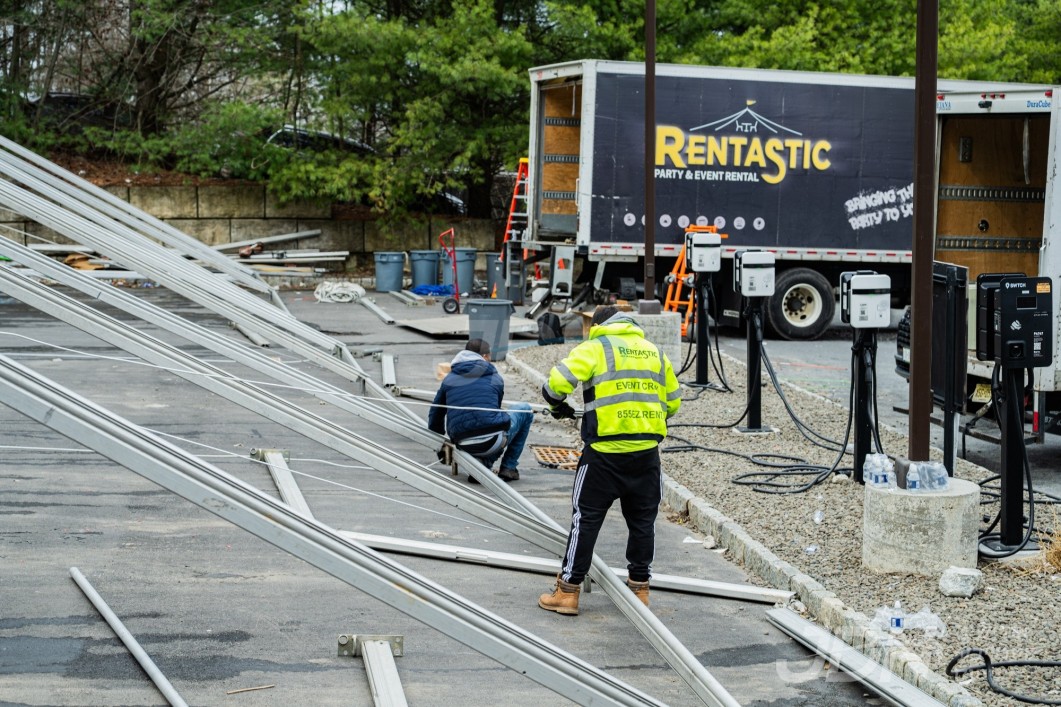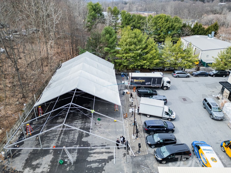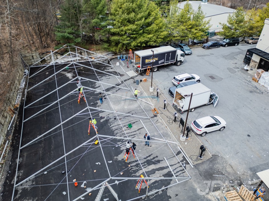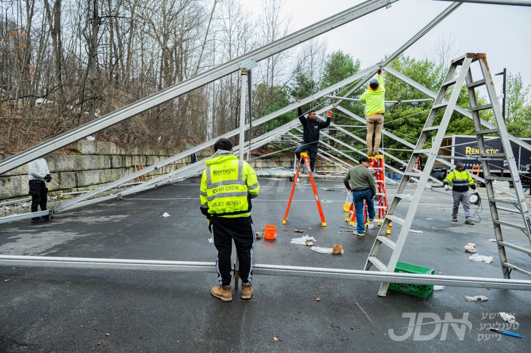 די בארימטע רענטעסטיק פארטי רענטאל פירמע ביים אויפשטעלן א ריזן שאטער אין די פארקינג לאט פון שלומיס סופערמארקעט אין קרית יואל