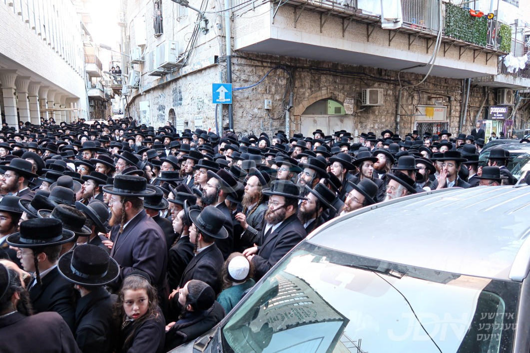 האדמו"ר מגור ביי די לוויה פון זיין שוועגערין מרת ווייץ ע"ה אין אשדוד