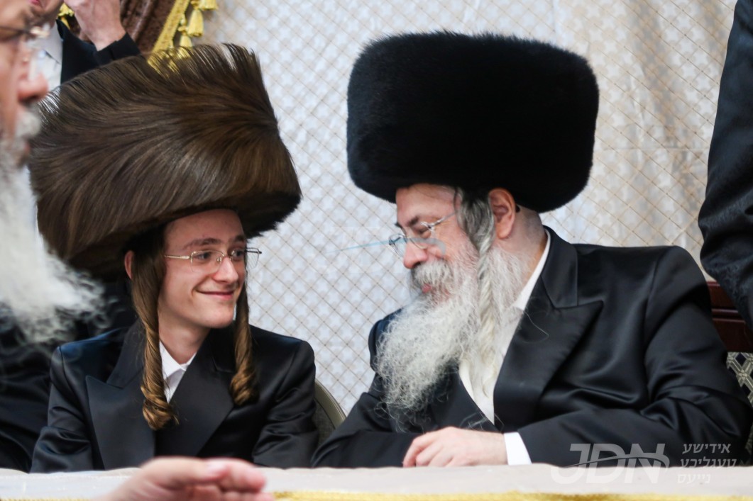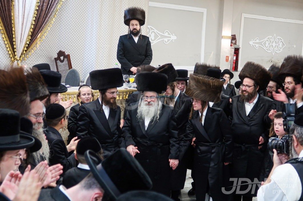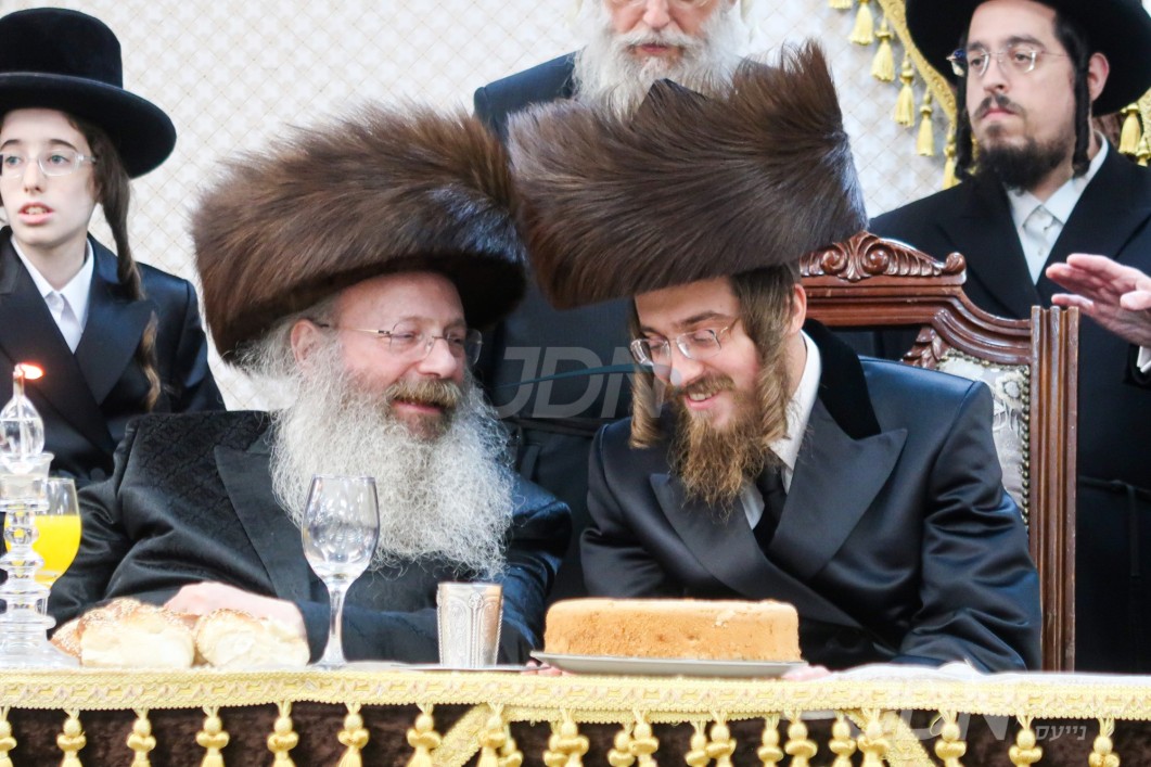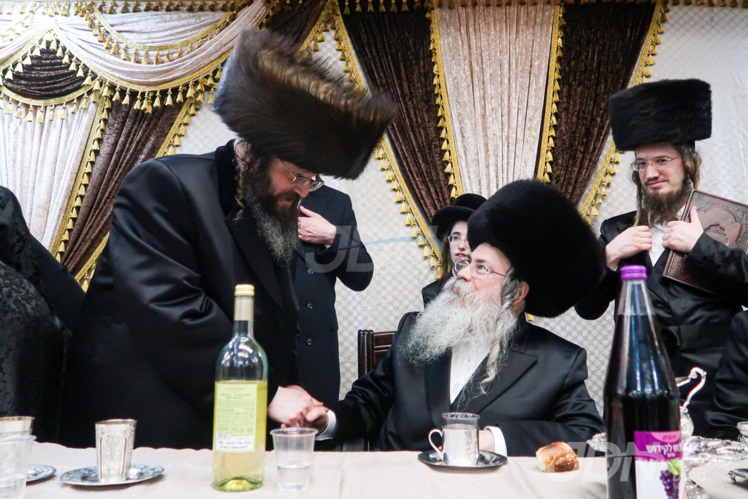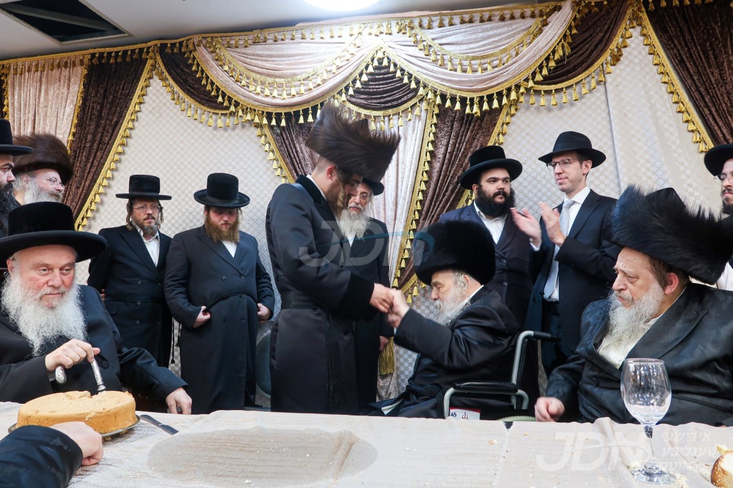בראש המסובים: האדמו"ר מסקאליע אנגעקומען אויף א געהויבענעם באזוך בעיר הבירה לאנדאן לרגל א משפחה שמחה