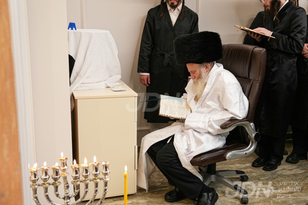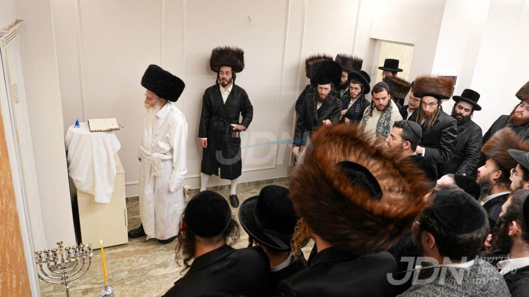 האדמו"ר מלעלוב ביים טיילן חנכה געלט פאר ילדי תלמוד תורה לעלוב