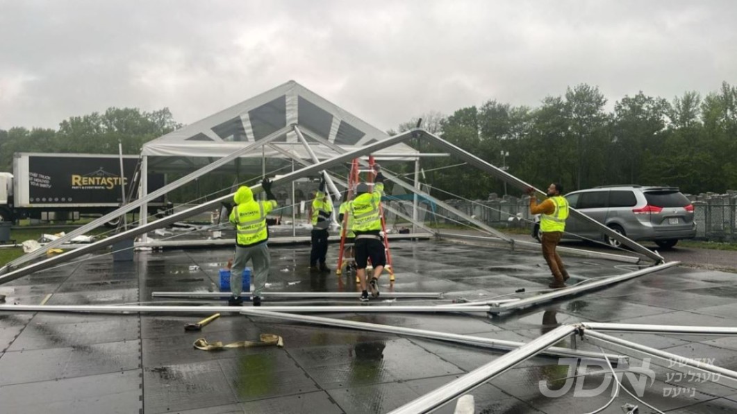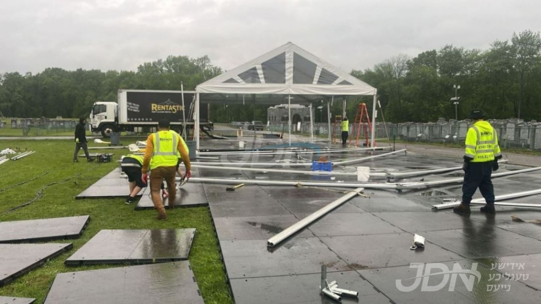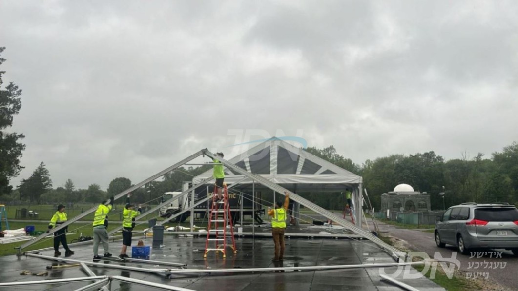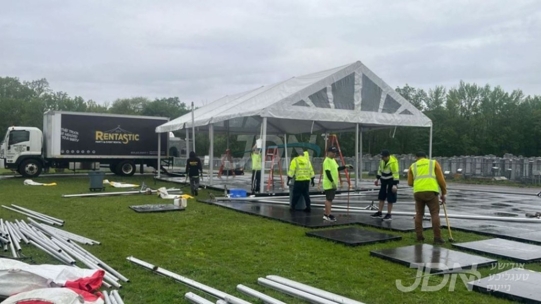 די בארימטע רענטעסטיק פארטי רענטאל פירמע ביים אנהייבן בויען די ריזיגע סטעידזשעס פאר די גרויסארטיגע סעודת הודאה כ&quot;א כסלו בחצר הקודש סאטמאר
