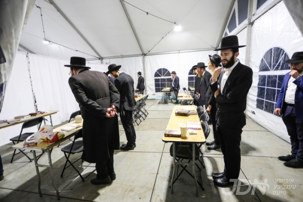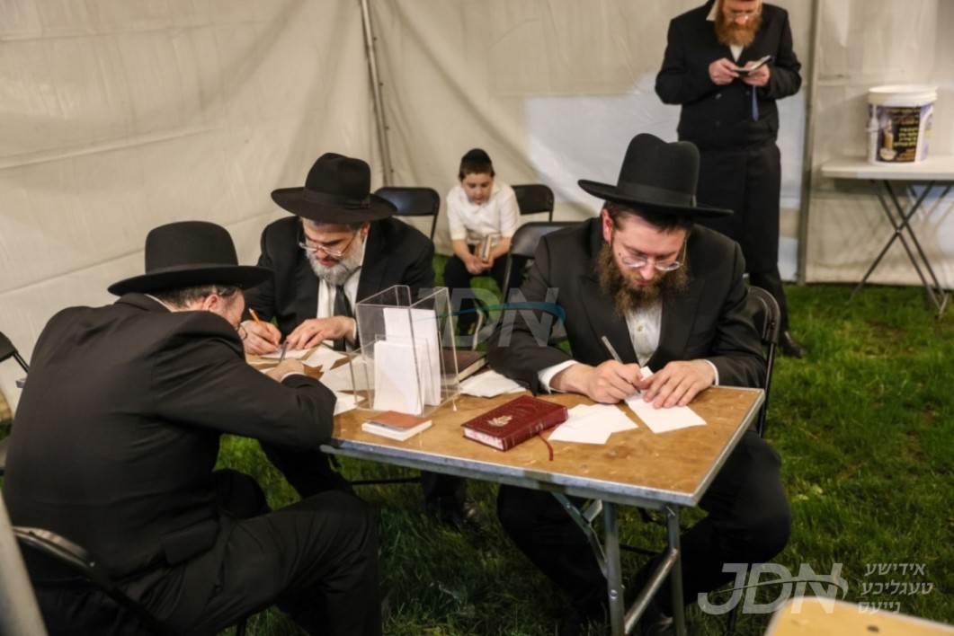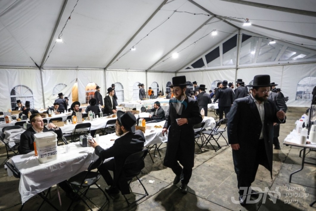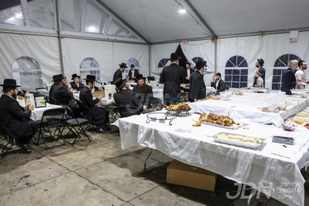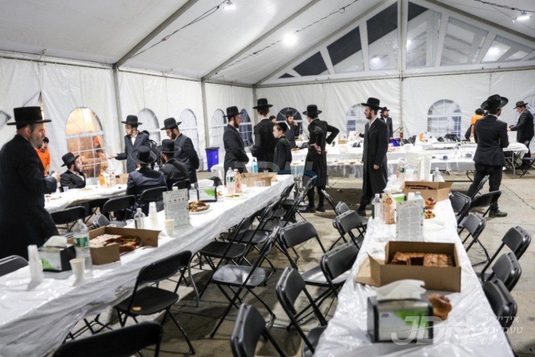 די בארימטע רענטעסטיק פארטי רענטאל פירמע ביים אנהייבן בויען די ריזיגע סטעידזשעס פאר די גרויסארטיגע סעודת הודאה כ"א כסלו בחצר הקודש סאטמאר