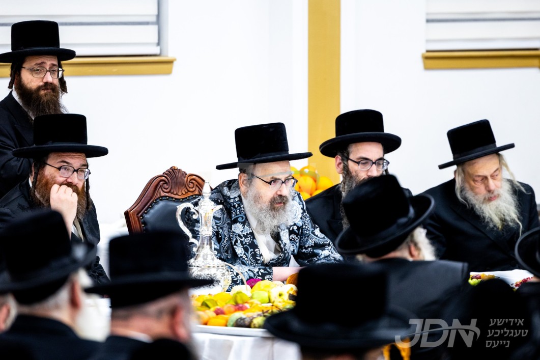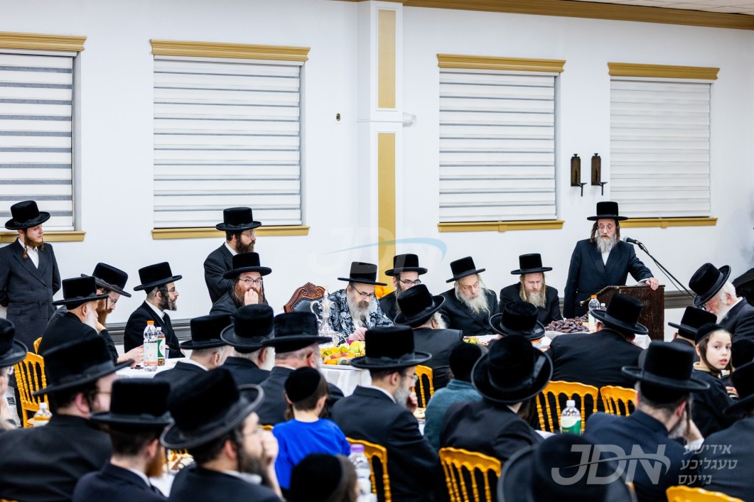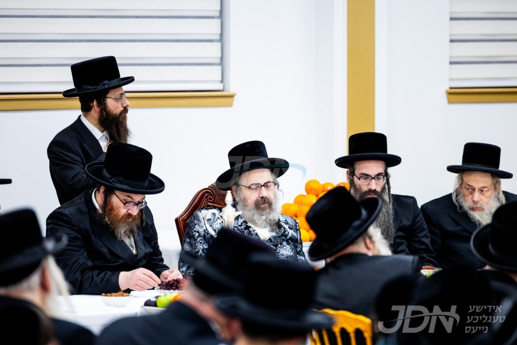 האדמו"ר מוויזניץ פון לאנדאן ביים טיש ליל חמשה עשר בשבט אין מאנסי, אינאיינעם מיט א מסיבה לטובת מוסדות וויזניץ לאנדאן