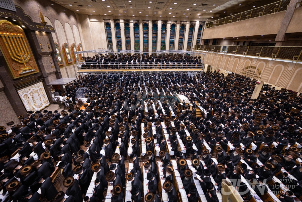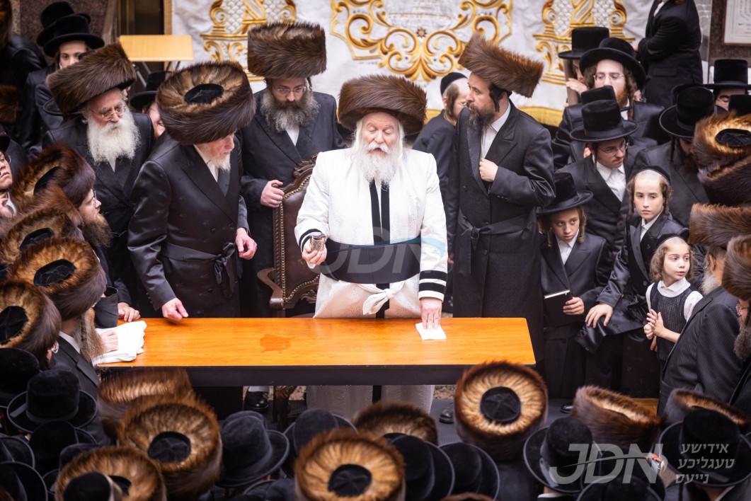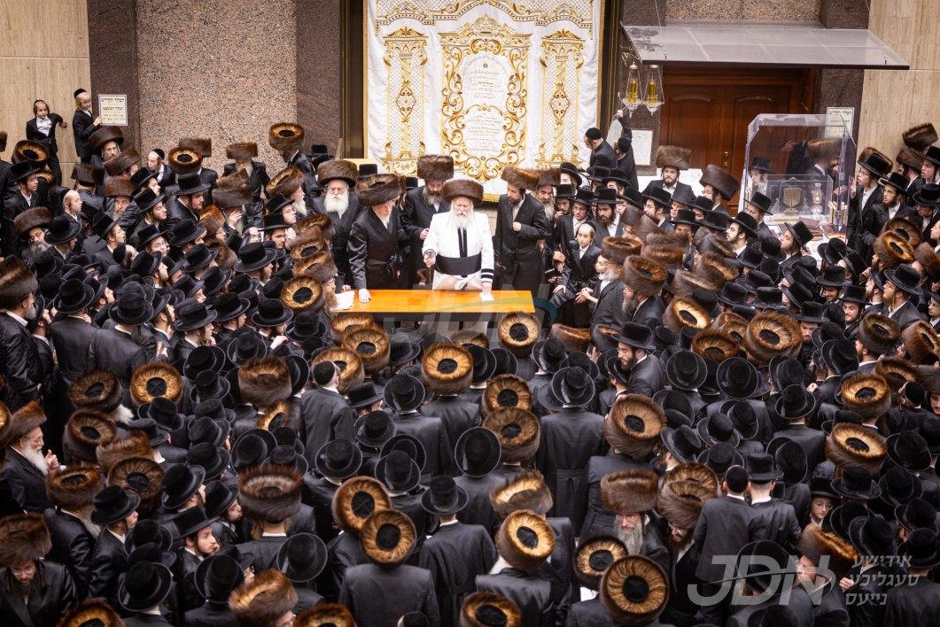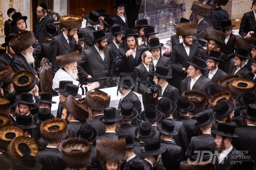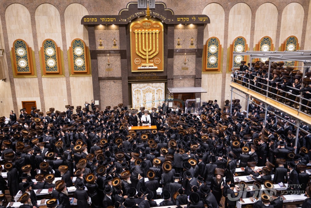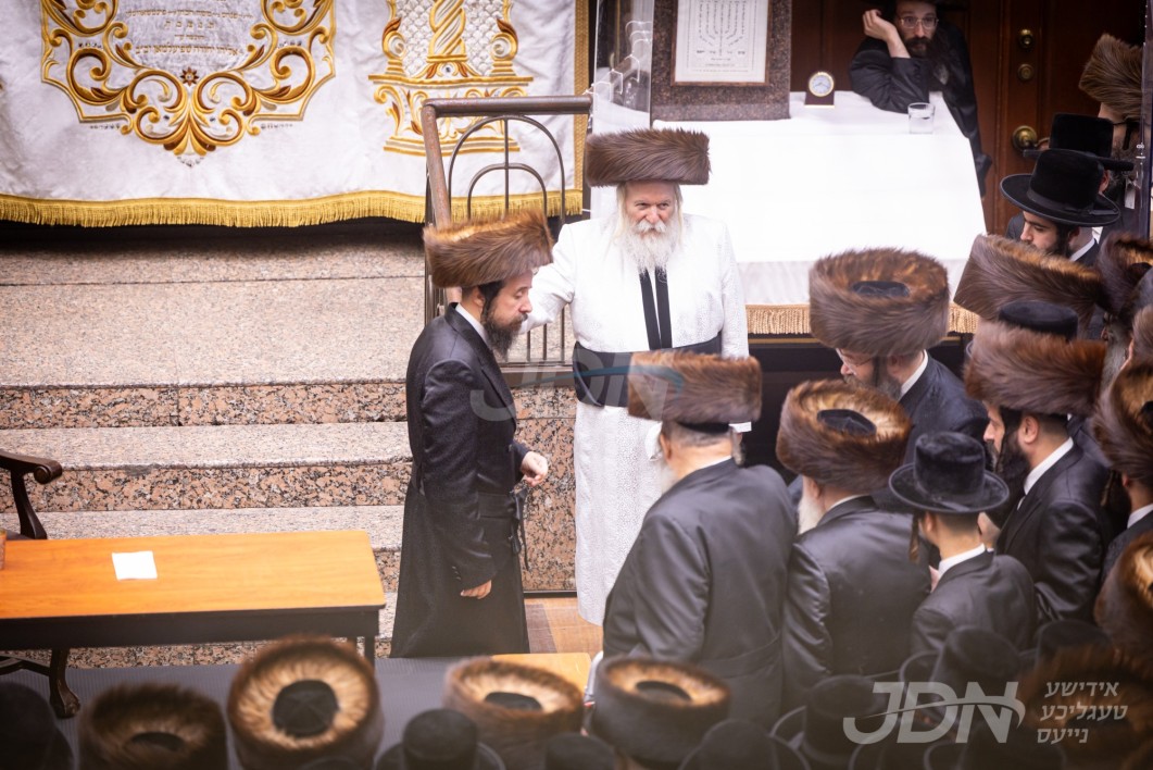 מעמד קביעת מזוזה פון ביהמ"ד החדש באבוב-45 און ראש השנה אין חצר הקודש באבוב-45