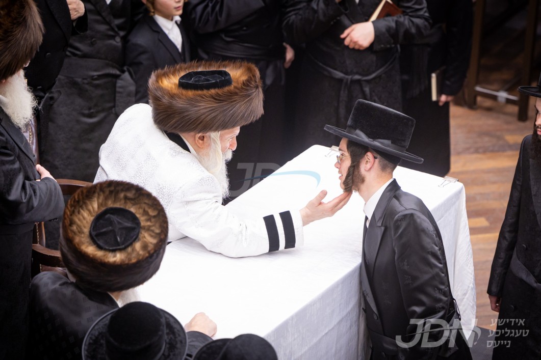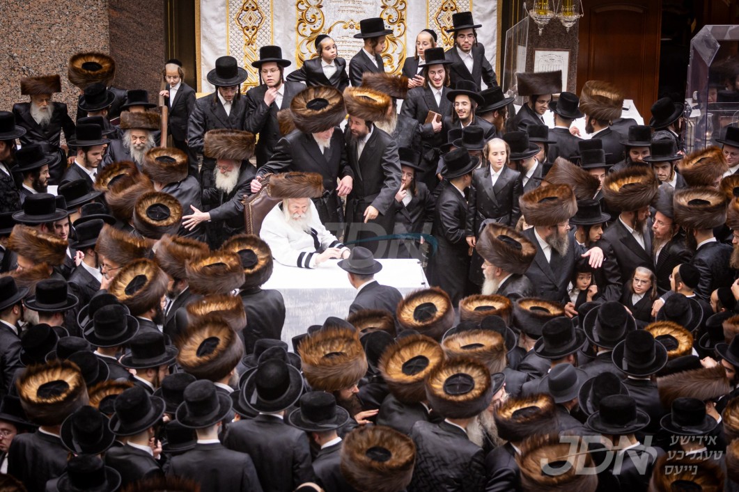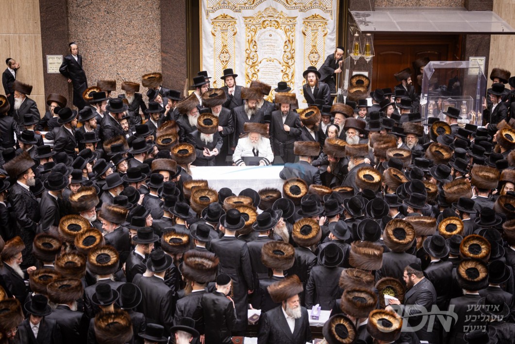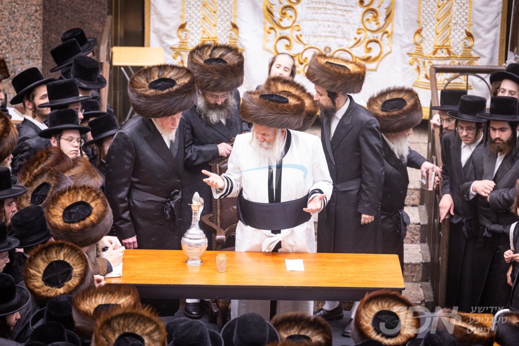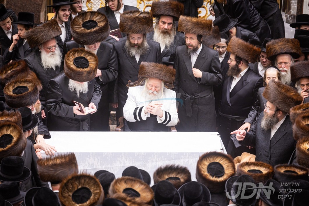 מעמד קביעת מזוזה פון ביהמ"ד החדש באבוב-45 און ראש השנה אין חצר הקודש באבוב-45