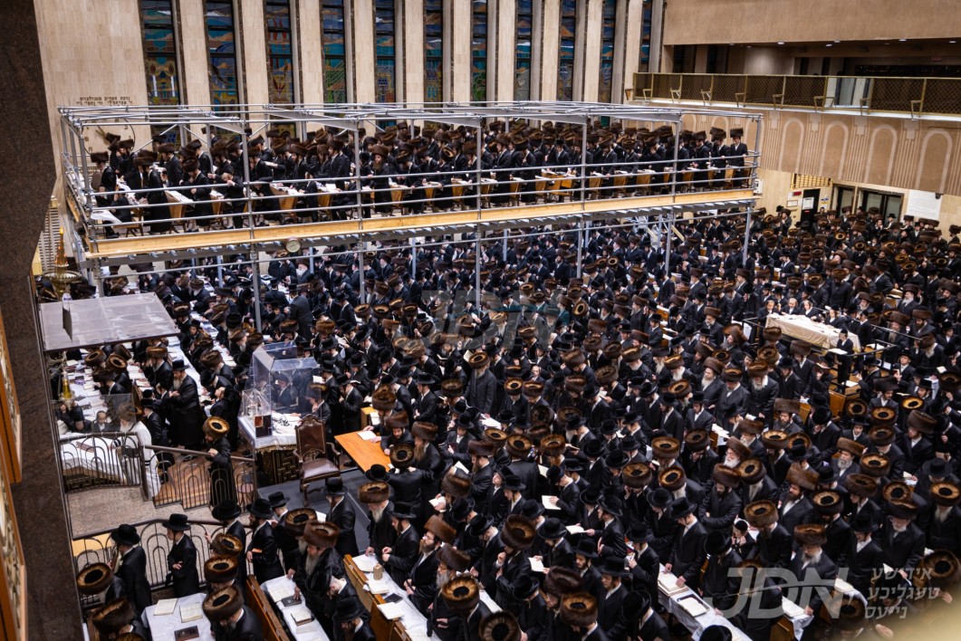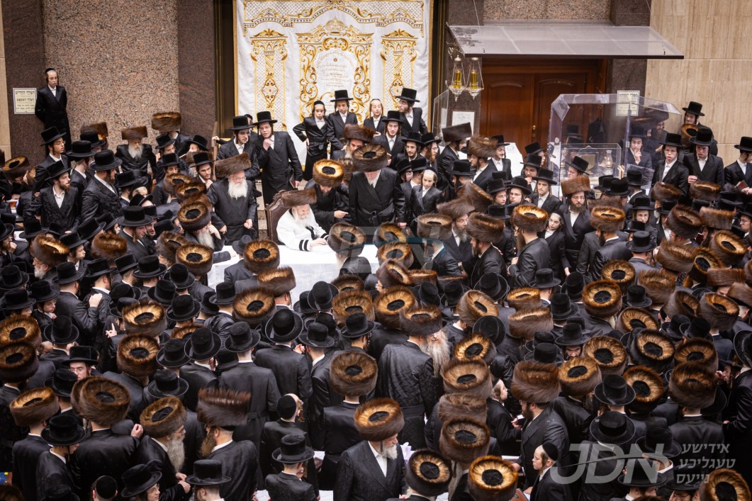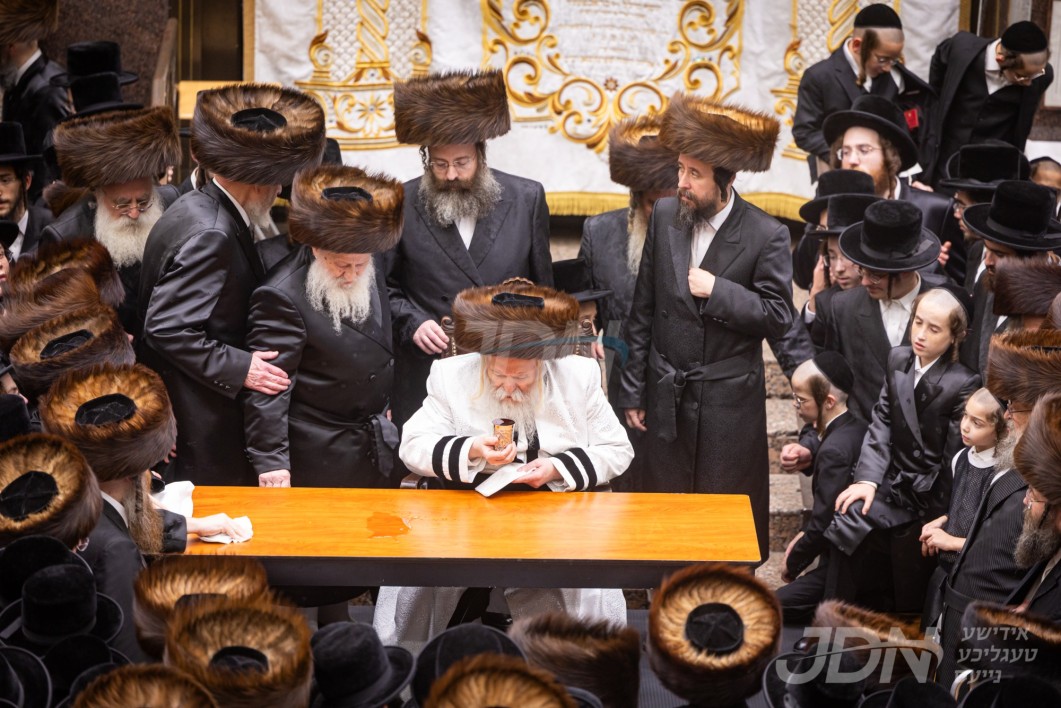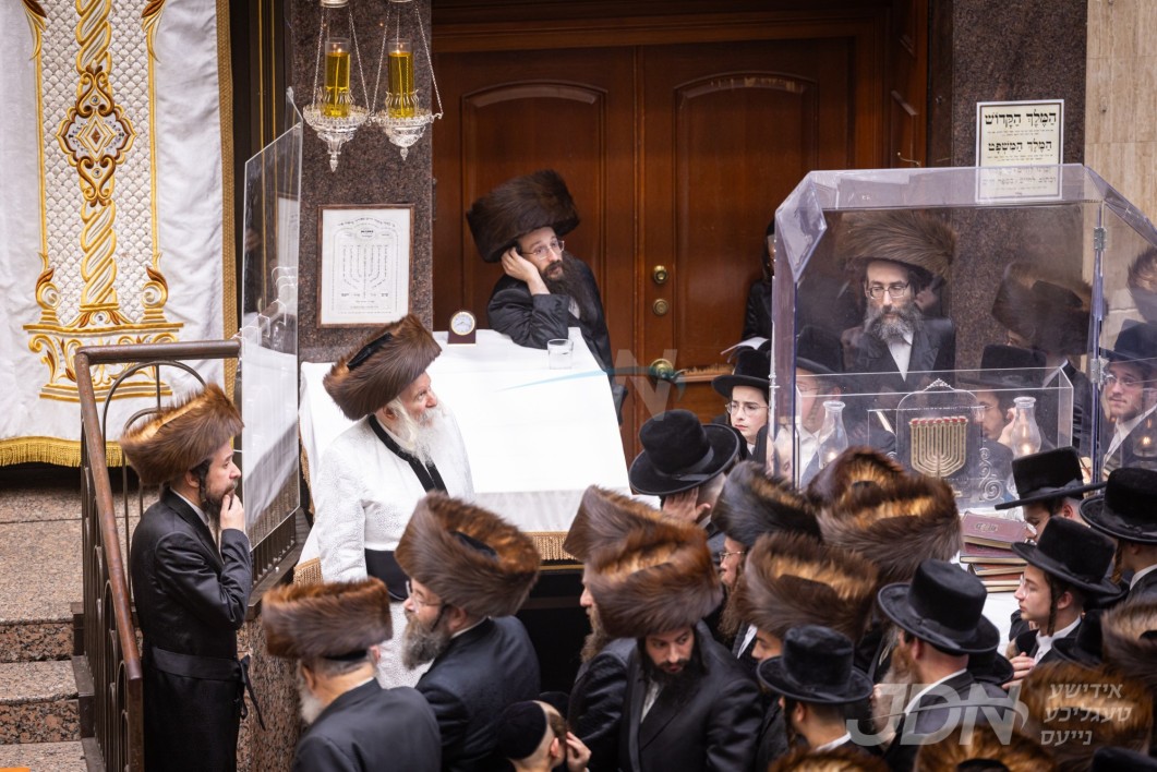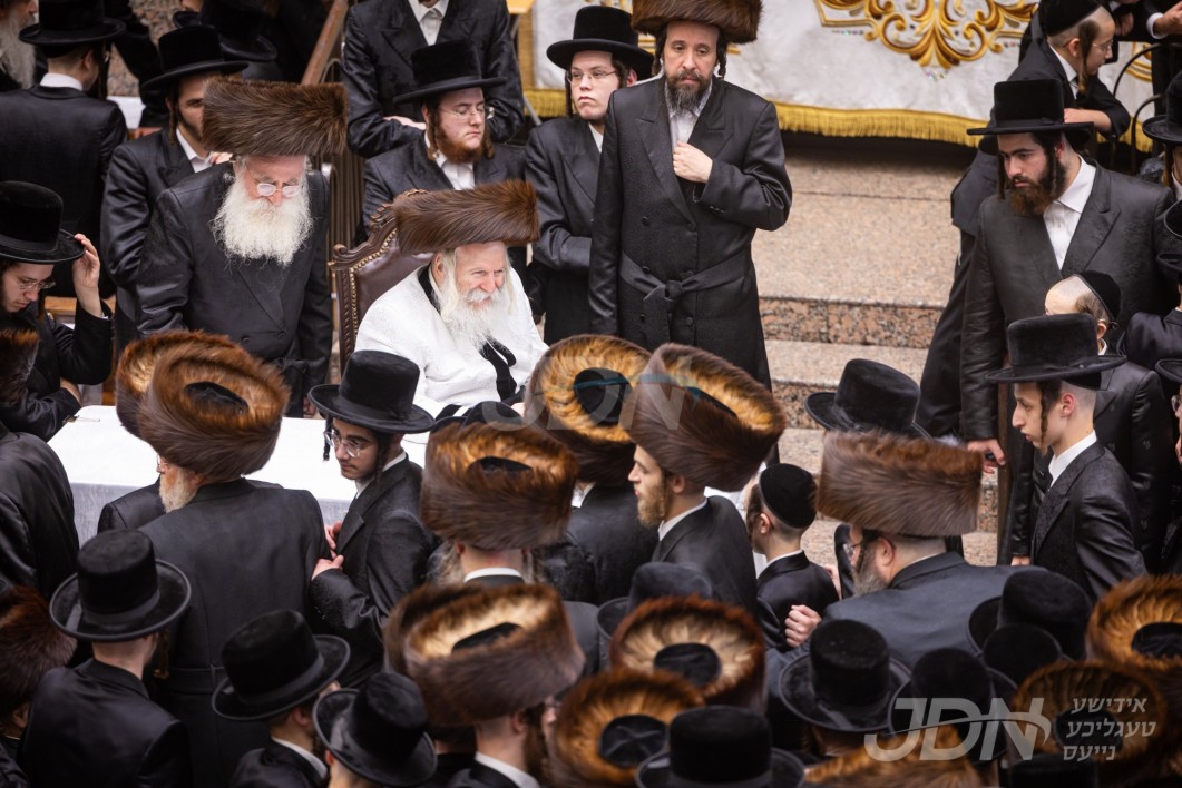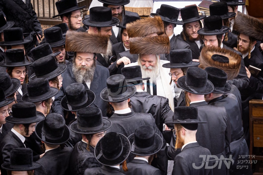 מעמד קביעת מזוזה פון ביהמ"ד החדש באבוב-45 און ראש השנה אין חצר הקודש באבוב-45