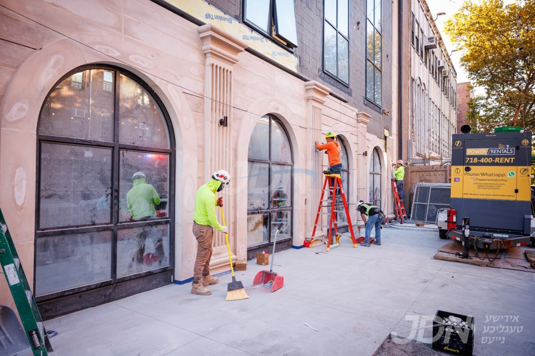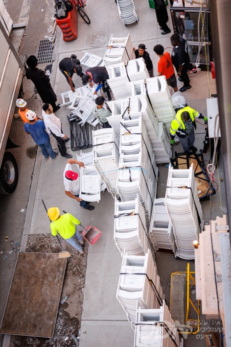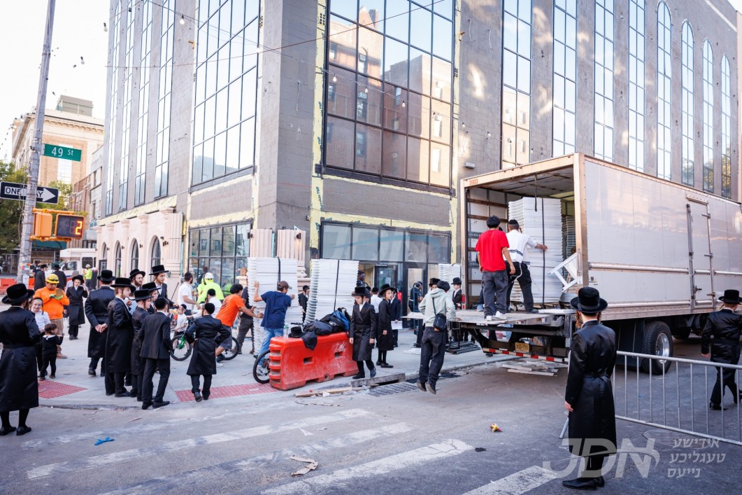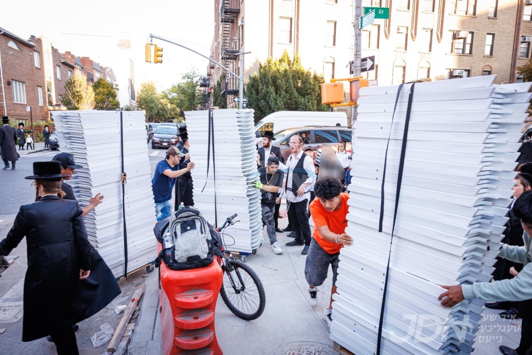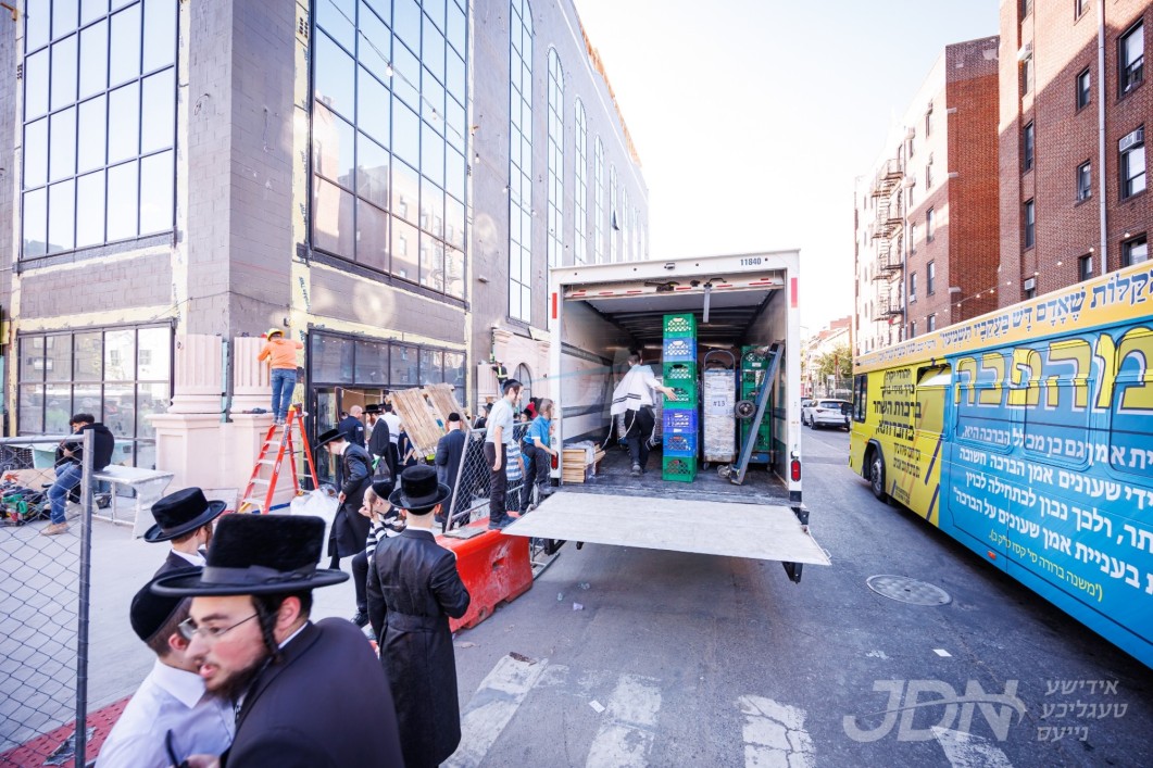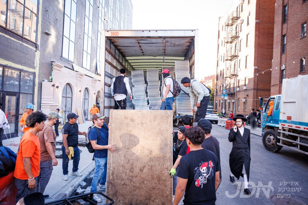 די בארימטע רענטעסטיק פארטי רענטאל פירמע ביים אנהייבן בויען די ריזיגע סטעידזשעס פאר די גרויסארטיגע סעודת הודאה כ"א כסלו בחצר הקודש סאטמאר