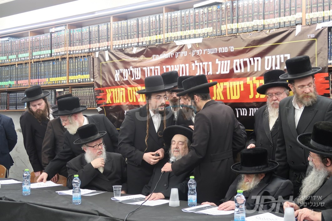 ביים אסיפה וואס איז פארגעקומען אין די וויזניצע זאל אויף רחוב נחמיה אין ירושלים, האבן זיך באטייליגט צווישן אנדערע כ"ק האדמורי"ם מסלאנים, ראחמיסטריווקא, טשערנאביל, לעלוב, וויזניץ פון בית שמש, בוהוש, פינסק קארלין, זוועהיל, שבט הלוי, ביאלא בני ברק, לוצק, סאסוב, סקולען פון ירושלים, חוג חתם סופר, הגה"צ ר' יעקב מאיר שעכטער שליט"א, הגה"צ ר' יצחק מאיר מארגענשטערן שליט"א אדמו"ר מתורת חכם, הגה"צ ר' צבי מאיר זילבערבערג שליט"א ראש חבורת נחלת יעקב, הגאון הגדול רבי משה צדקה שליט"א ראש ישיבת פורת יוסף, און נאך פילע רבנים וראשי ישיבות.