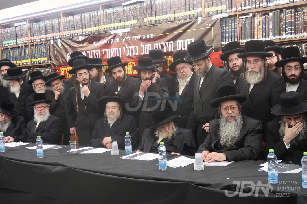 יעצט אויפדערנאכט אין ארץ ישראל איז פארגעקומען א דריגענדע אסיפה אין ירושלים עיה"ק, וואו עס האבן זיך צוזאמגענומען צענדליגע אדמורי"ם ורבנים וראשי ישיבות, צו דורכשמועסן די ברענענדיגע נושא פון די גזירת הגיוס בארץ הקודש, און אוועקשטעלן א פעלזן פעסטע שטעלונג קעגן די חוק הגיוס וואס ווערט באטראכט אין די יעצטיגע טעג.