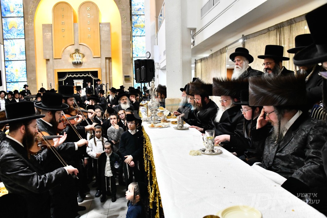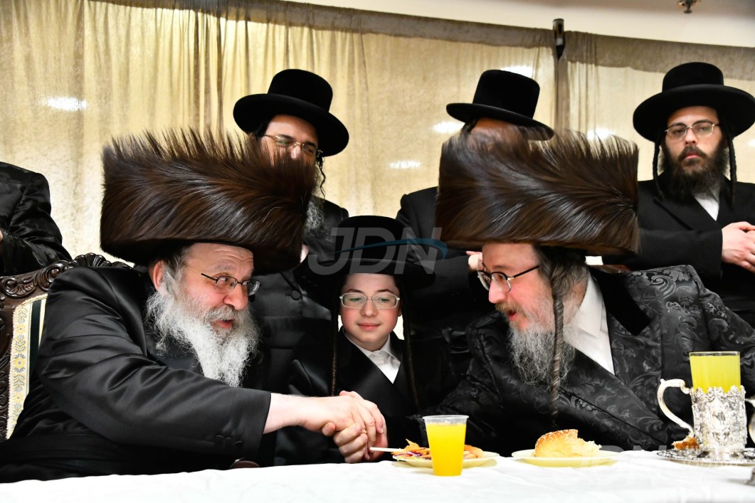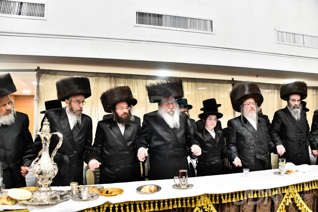 האדמו"ר ממאדזיץ ביי הדלקת נרות חנוכה אינאיינעם מיטן שמחת הבר מצוה פון אן אייניקל