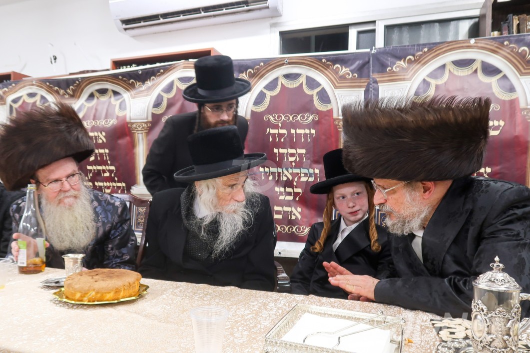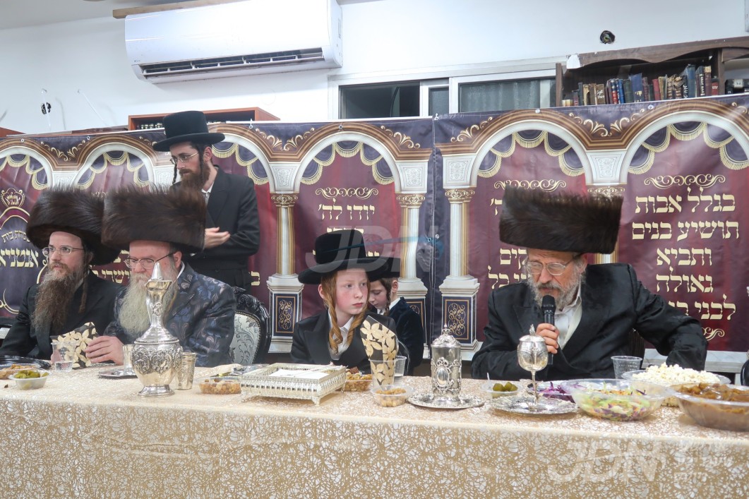 האדמו"ר ממאדזיץ ביי הדלקת נרות חנוכה אינאיינעם מיטן שמחת הבר מצוה פון אן אייניקל