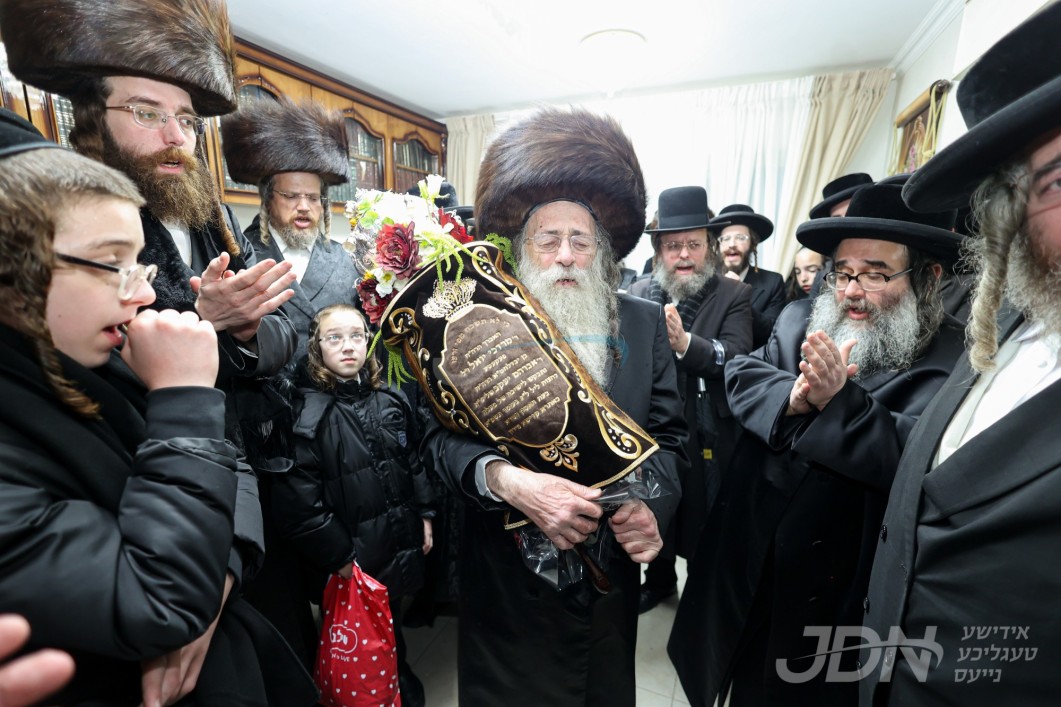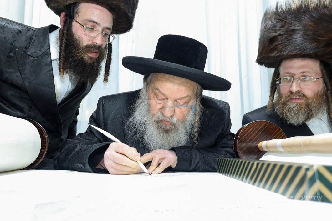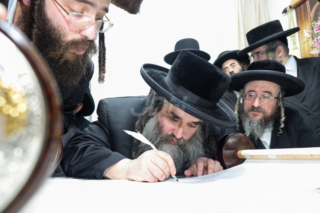 סיום כתיבת ספר תורה ביי האדמו"ר מסקווירא פארן ספר תורה וואס וועט אריינגעגעבן ווערן צו ביהמ"ד סקווירא אין רמה ד' בית שמש