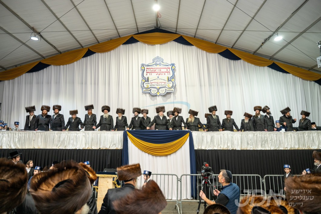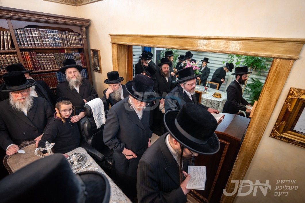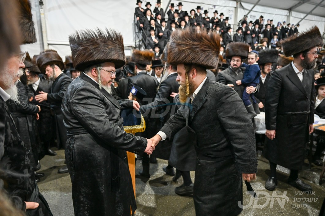 ערשטע בילדער פון די מסע הקודש פון האדמו"ר מצאנז אין אמעריקע, אנקומענדיג אין לופטפעלד, תפילת שחרית, און ביקורי כבוד ביי ראשי ישיבת לעיקוואד