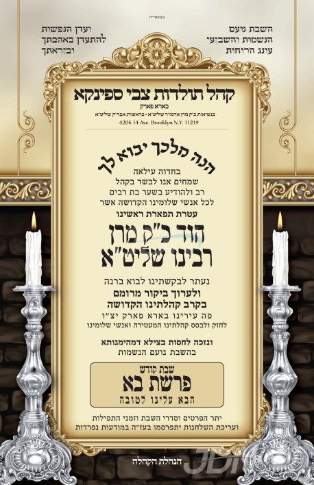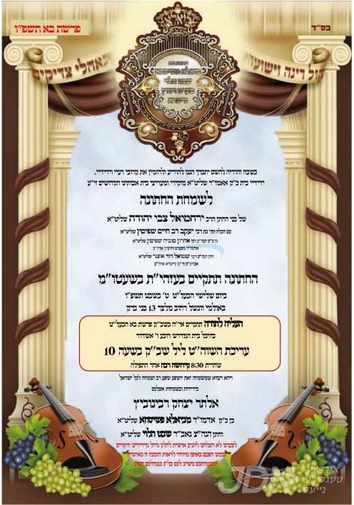 דעם שבת קומט פאר די שמחת האויפרוף פונעם חתן א זון פון הגה"צ ר' אלטר יצחק ראבינאוויטש שליט"א, זון פון כ"ק אדמו"ר מביאלא פשיסחא שליט"א פון אשדוד, און איידעם ביי הגה"צ ר' אברהם יעקב איצקאוויטש שליט"א אבד"ק שבט הלוי ירושלים, מיט די כלה א טאכטער פון הגה"צ ר' יעקב בער שפיטץ שליט"א, זון פון כ"ק אדמו"ר מסערט וויזניץ ארה"ב שליט"א, און איידעם ביי כ"ק אדמו"ר מנייטרא שליט"א. – די שמחת האויפרוף קומט פאר אין ביהמ"ד ביאלא פשיסחא אין אשדוד.