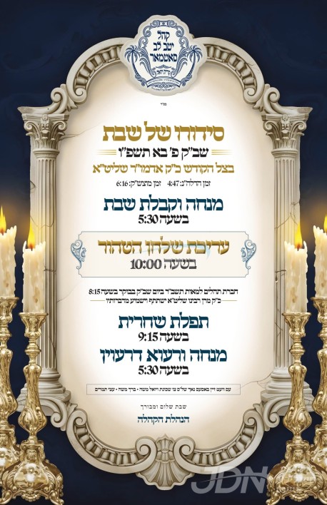 כ"ק אדמו"ר מסאטמאר שליט"א איז צוגאסט אויף דעם שבת אין קרית יואל בקרב חסידיו, די תפילות און טישן קומען פאר אין ביהמ"ד הגדול סאטמאר אויף גארפיעלד, דער רבי שליט"א וועט דאווענען פארן עמוד די תפילות לרגל די הונדערטסטע הילולא קדישא פון זקינו הרה"ק בעל עצי חיים מסיגעט זי"ע.