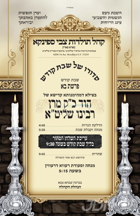 כ"ק אדמו"ר מתולדות צבי ספינקא שליט"א איז צוגאסט אויף דעם שבת אין בארא פארק בקרב חסידיו, די תפילות און טישן קומען פאר בבית מדרשו.