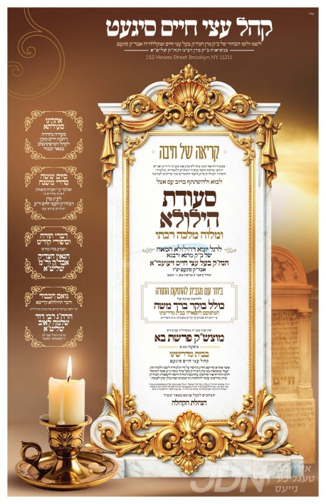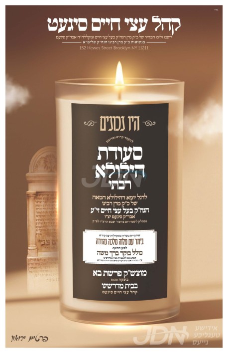 היינט קומט פאר די יערליכע דינער לטובת כולל בוקר ברך משה אין ביהמ"ד עצי חיים סיגעט אין וויליאמסבורג, אינאיינעם מיט די סעודת הילולא לרגל די הונדערטסטע הילולא קדישא פון הרה"ק בעל עצי חיים מסיגעט זי"ע.