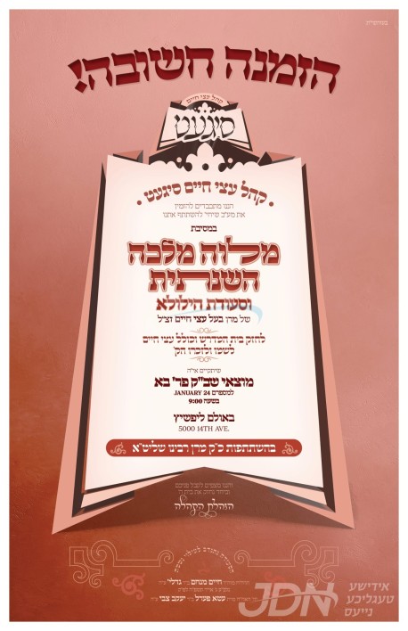 היינט קומט פאר די יערליכע מלוה מלכה לטובת ביהמ"ד משיב כהלכה לינסק אין בארא פארק, אין זאל גרענד טערעס אין בארא פארק.