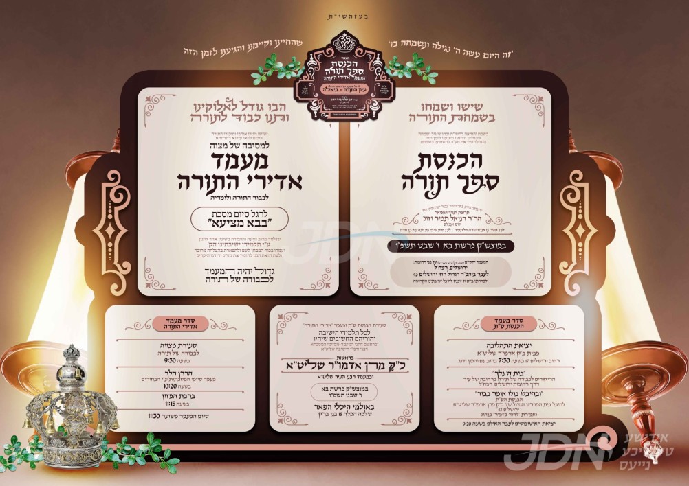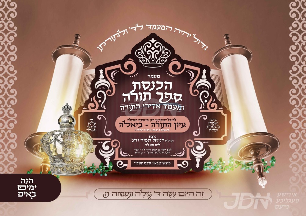 היינט קומט פאר די מעמד הכנסת ספר תורה וואס ווערט אריינגעגעבן צום היכל ישיבה גדולה עיון התורה דחסידי ביאלא בני ברק, אינאיינעם מיט די מעמד אדירי התורה, חלוקת פרסים פאר די תלמידי הישיבה, אין שפיץ פון כ"ק אדמו"ר מביאלא בני ברק שליט"א.