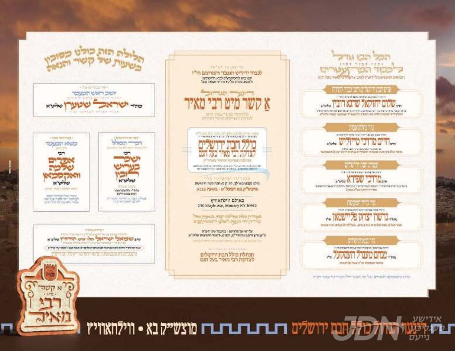 היינט קומט פאר די יערליכע דינער לטובת צדקת רבי מאיר בעל הנס כולל חבת ירושלים, אין ווילחאוויץ זאל אין מאנסי, אין שפיץ פון די אדמור"י ורבני העיר.