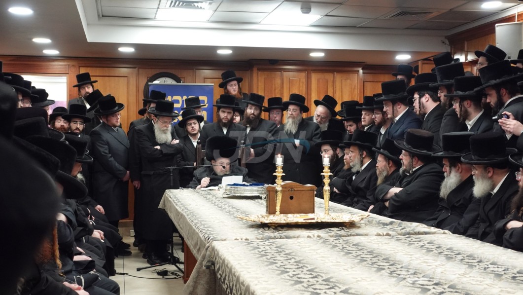 בוגרי ישיבות בעלזא משתתפי כינוס ימי 'תעצומות' ביים מעמד 'כוללות קוויטל' ביי האדמו"ר מבעלזא