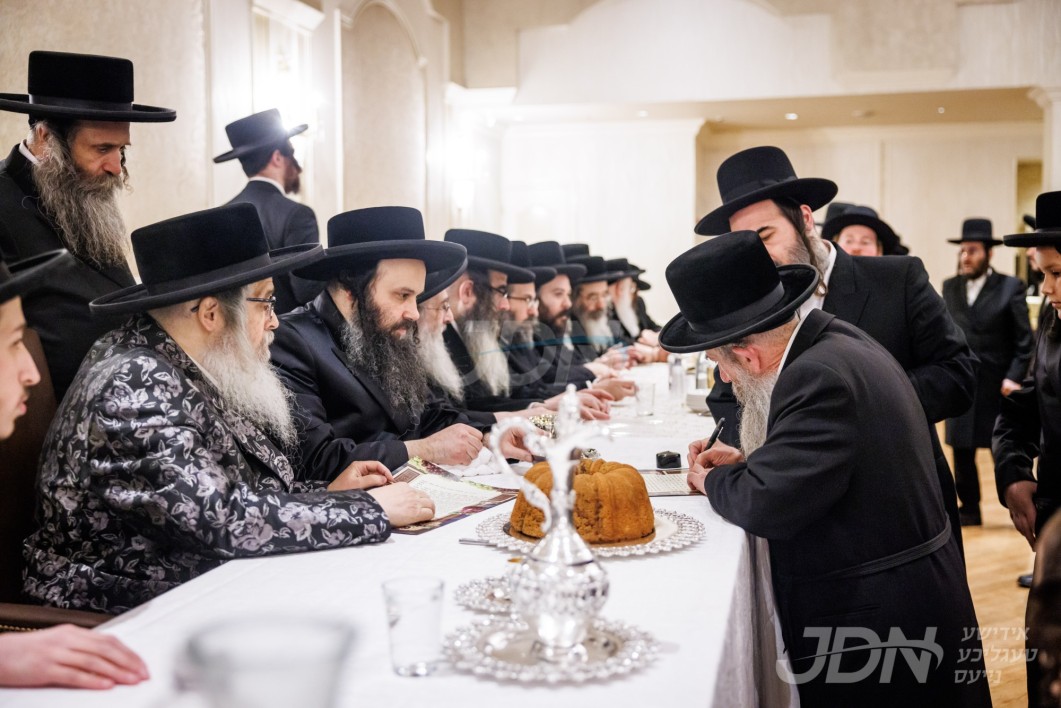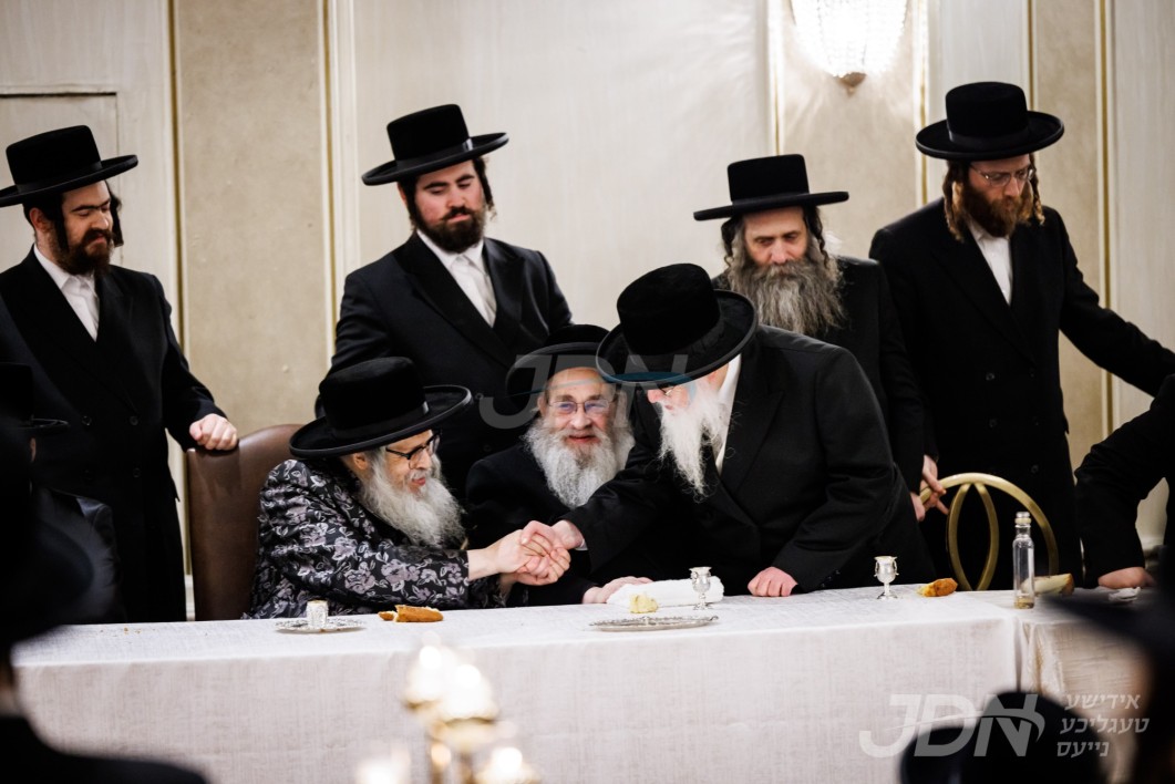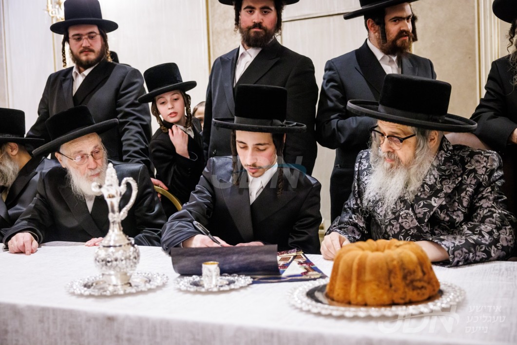 שמחת התנאים פון הכלה אייניקל פון האדמו"ר מבאבוב און אב"ד סאטמאר ב"פ מיט החתן אייניקל פון האדמו"ר מספינקא און אבד"ק טשאקאווא קערעסטיר